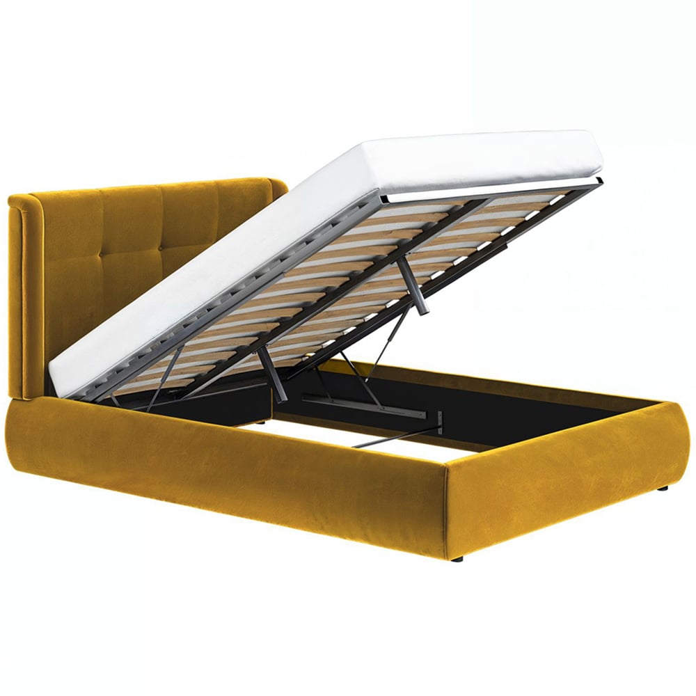 Solace+Co Monte King Size Gold Velvet Ottoman Bed with Winged Button Headboard