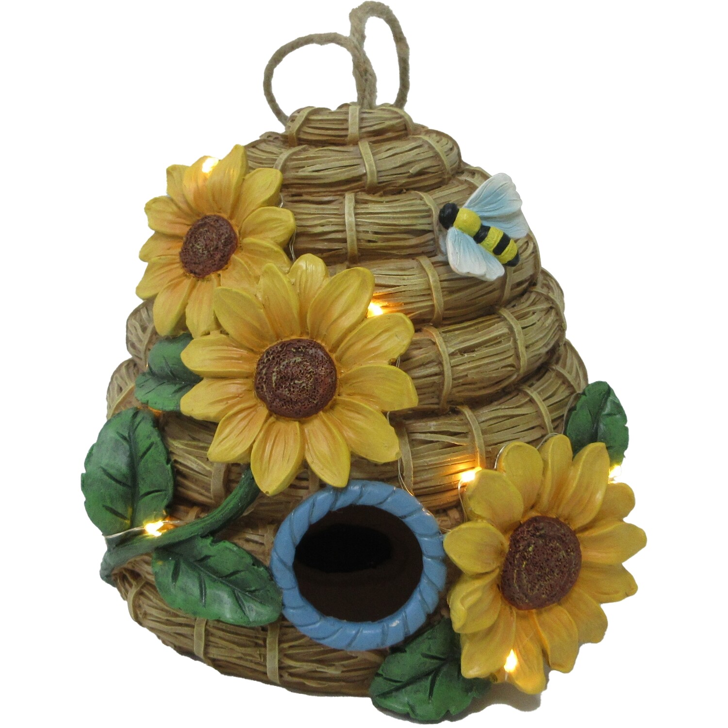Fun and whimsical, this Solar Bee Hive Decorative Nester is an excellent addition to your garden. With a beautiful hive-inspired design, vibrant sunflowers and bees, this versatile ornament can be displayed from a branch, bracket or placed on your patio. Powered by solar, the warm lights are perfect for illuminating your garden and adding a cosy touch.