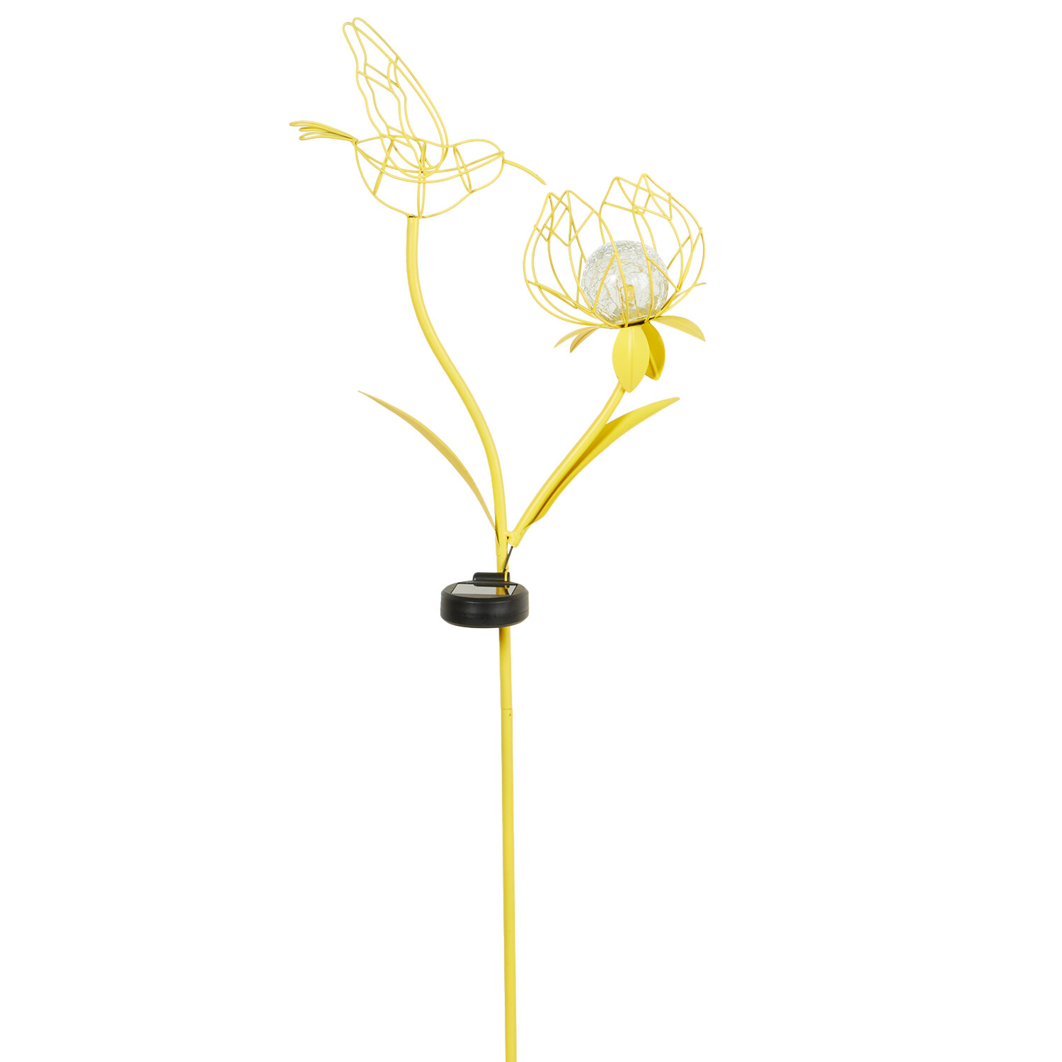Brighten up your outdoors with this Solar Floral Wire Stake Light. Finished in an intricate floral design, it adds an elegant touch to your pathway, garden or patio. Available in an assortment of yellow, pink, green or blue hues, this stake light will illuminate your evenings with its beauty.