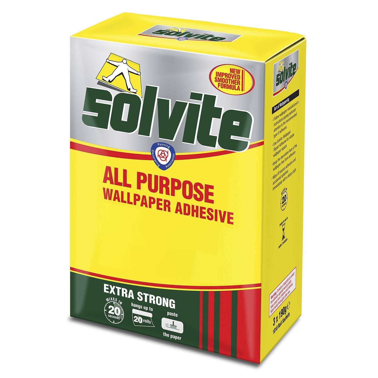 An all-purpose, strong wallpaper adhesive is ideal for a range of wallpaper hanging projects and ensures reliable and long-lasting results for up to 20 rolls of wallpaper. The Solvite wallpaper adhesive can be mixed in 20 seconds and is ready to use in under 2 minutes, with a smooth consistency for easy application. The Solvite wallpaper paste can be used for most paste the wall wallpapers including lining papers, washable, vinyl, textured and blown vinyl, embossed and heavy embossed wallpapers