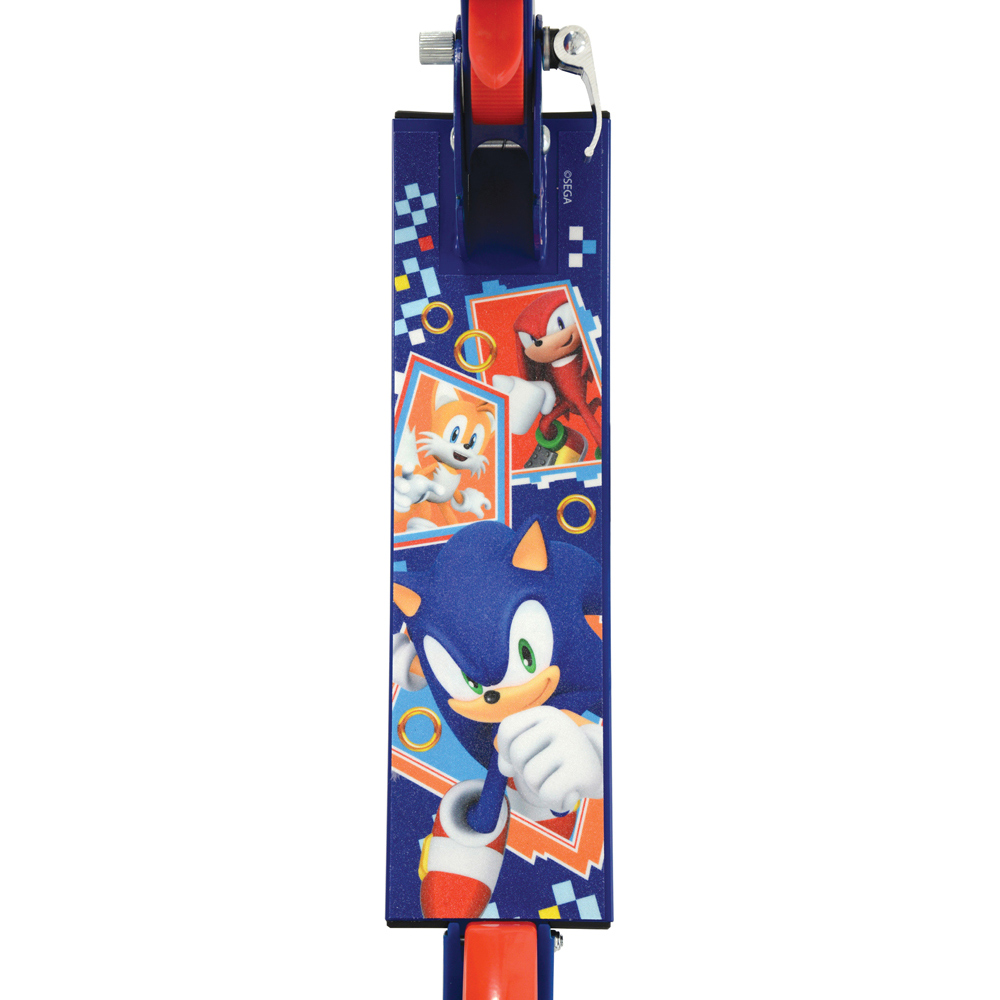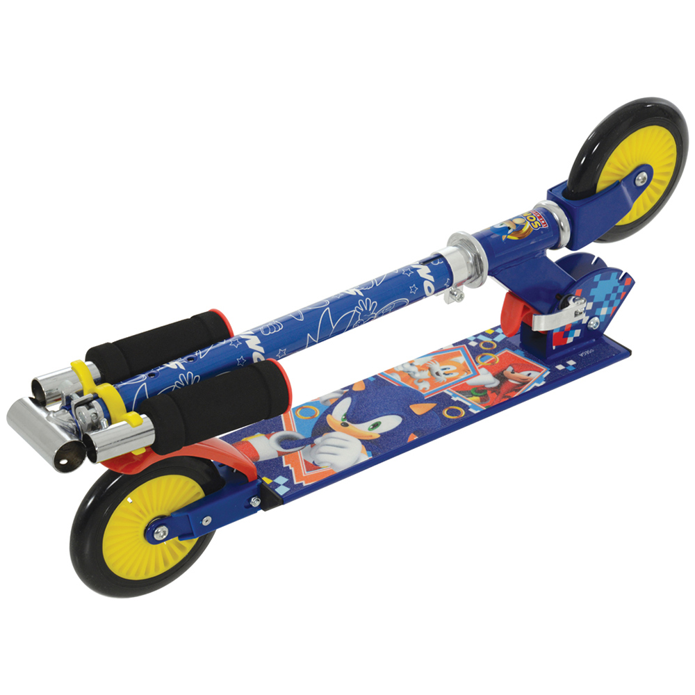 The Sonic Folding Inline Scooter Folding In-line Scooter is ideal for older riders who have mastered three wheels. Featuring soft touch handlebar grips, reactive rear footbrake and lick puncture-proof tyres, riders are in for a fast and comfortable journey! The scooter folds and unfolds quickly and easily making it perfect for transportation and storage and is ready to ride right out of the box! Crafted with a durable steel frame, the fully printed stem wrap and anti-slip footplate feature cool graphics meaning riders will look neat on the streets!