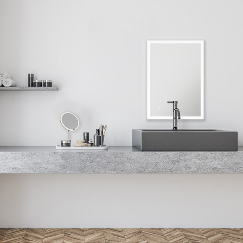 Elevate your bathroom space with Sorrelis Hollis LED Mirror. This LED mirror features a natural white (4000K) diffused illuminated border to the front of the mirrors, which provides a uniform light output all around the mirrors, with no dark spots. The mirrors stays fog free due to the built-in demister pad, which switches off automatically after 60 minutes. The mirror also has an IP44 rating making it suitable for use in a bathroom environment. The Hollis can be positioned portrait or landscape. Dimensions: 70 x 50cm.