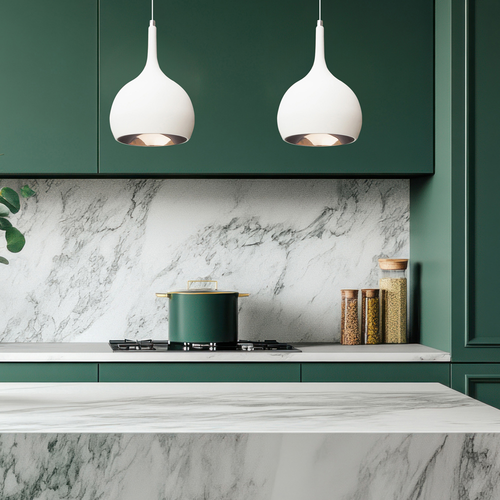 Illuminates your space in style with the stunning Phaedra White LED pendant light. It is available with a matt white finish on the outer body, with an on-trend copper finish on the interior. The Phaedra pendant features a built in LED in an natural white colour temperature, and includes an adjustable cable to suit various areas of the kitchen or home.