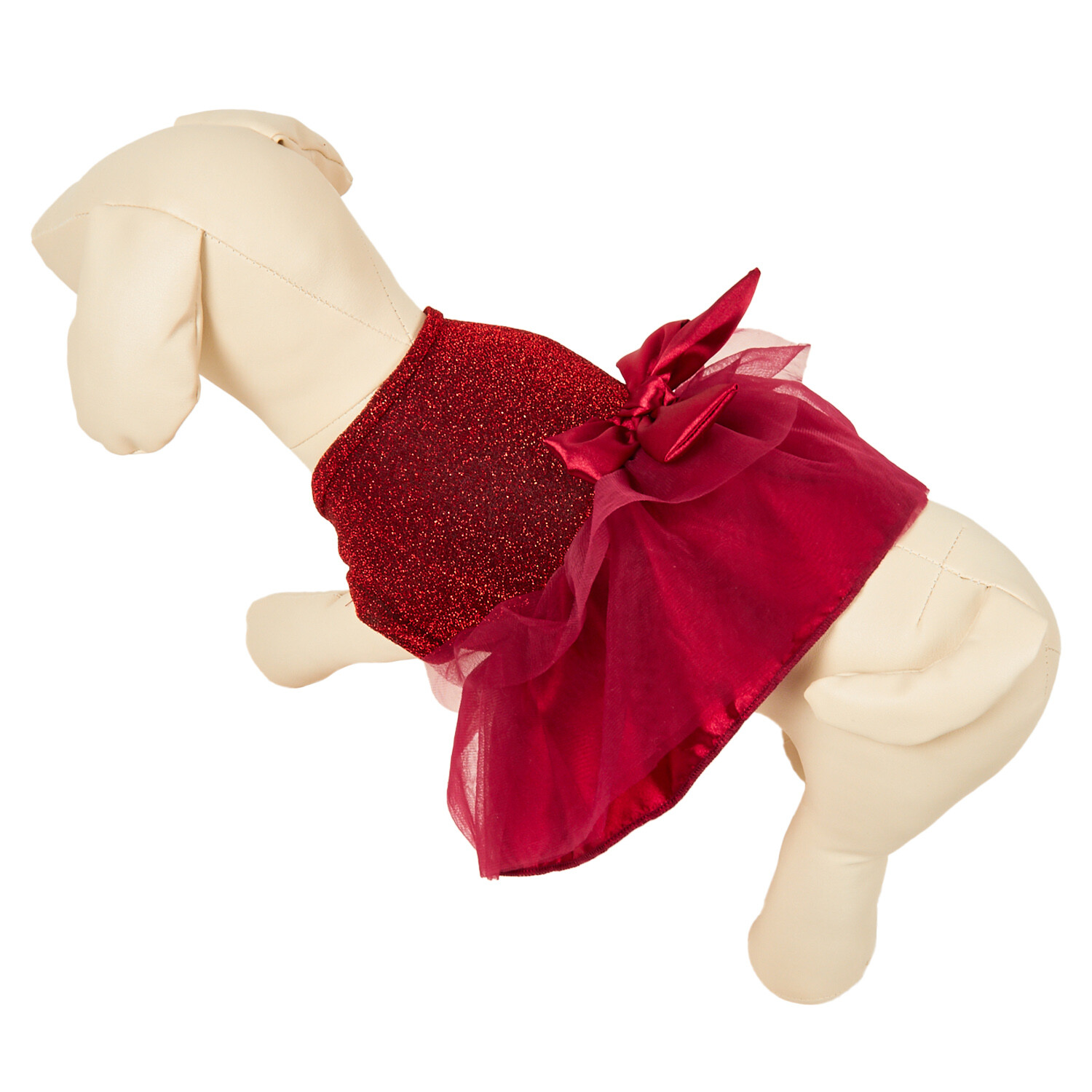 Elevate your pet's festive style with this charming Sparkling Dress, perfect for special occasions. The glittering top is accented by a delicate bow, while the flowy fabric in the bottom creates a beautiful skirt. Ideal for adding a touch of elegance to your furry friend's holiday celebrations.