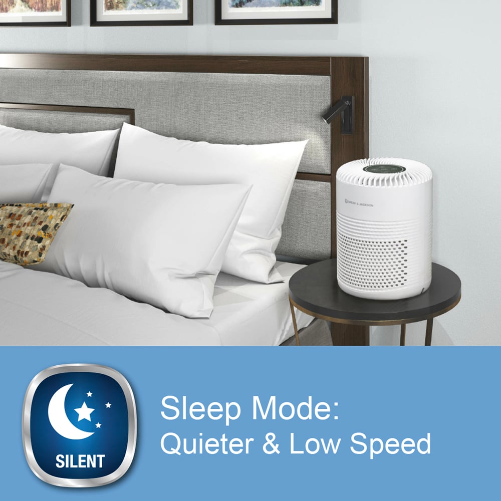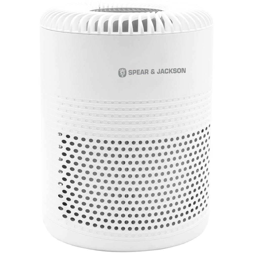 The Spear & Jackson Air Purifier with Night Light is equipped with an activated HEPA Filter that effectively eliminates airborne allergens like dust and pollen, as well as unpleasant odours. It is designed to be compact and can be placed on a desktop or bedside table, ensuring cleaner air in your home, bedroom, or office. With a clean air delivery rate of 80m3/h and a usage area of 6-10m2, this air purifier guarantees a restful night's sleep and an overall improvement in air quality. The innovative three-speed control allows you to customize the air filtration process. For optimal results, it is recommended to run the air purifier continuously on the highest setting. The durable motor is built to last for many years of use. To enjoy a quieter operation, such as during sleep, simply select the sleep mode. The timer function enables you to conveniently schedule the air purifier to run for two, four, or eight hours. Additionally, it features a soothing blue night light, allowing you to create the perfect ambience according to your preferences. The air purifier is operated through a touch button control panel, and its dimensions are 20.5 x 20.5 x 26.5cm.