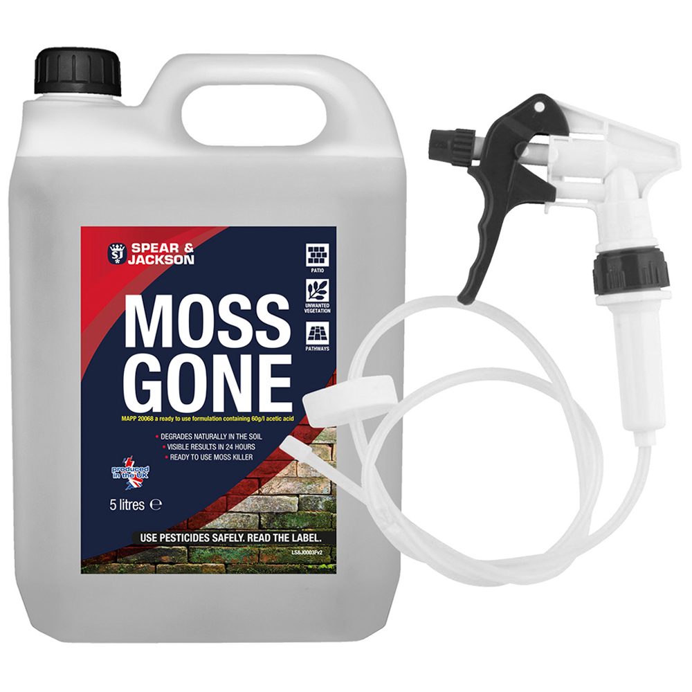 Spear & Jackson Moss Gone Ready to Use Moss Killer with Long Hose Trigger Spray 5L