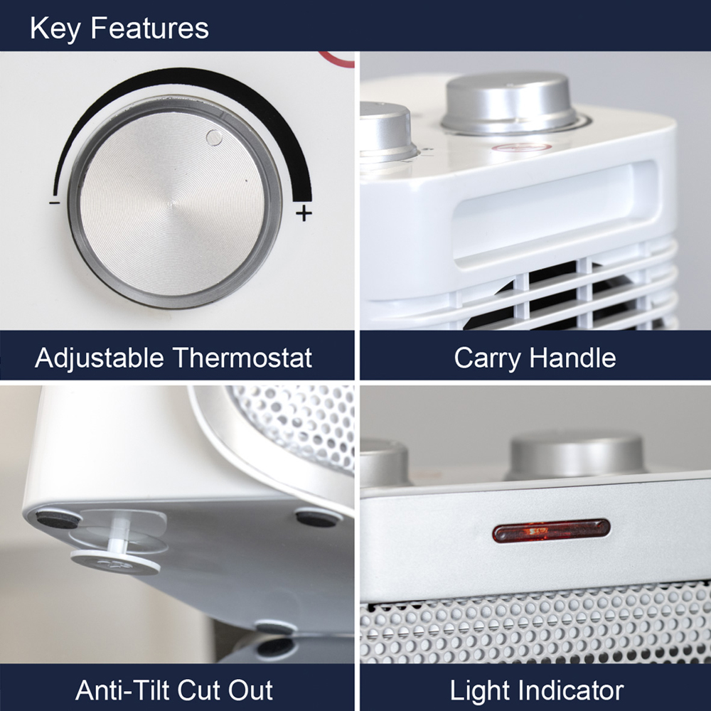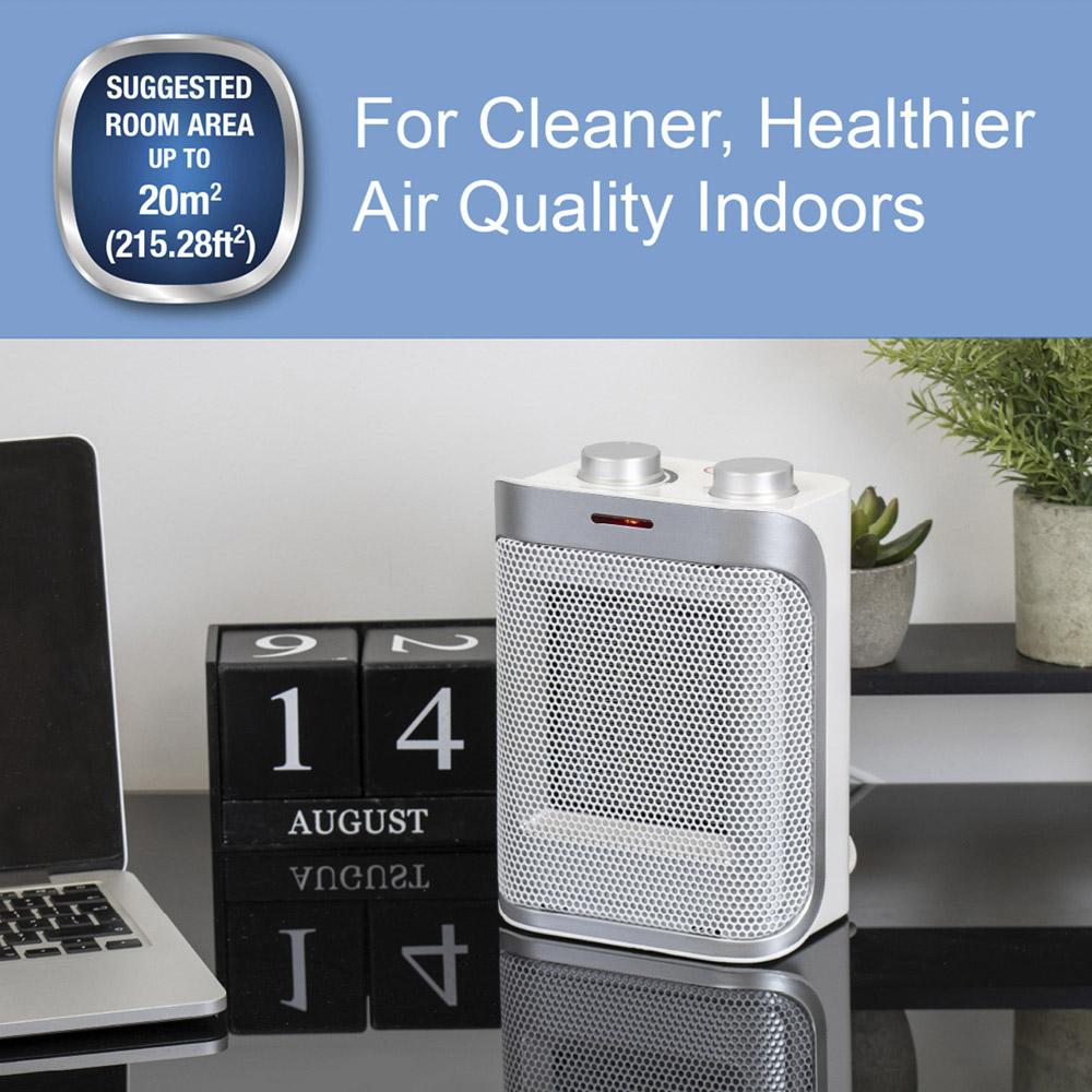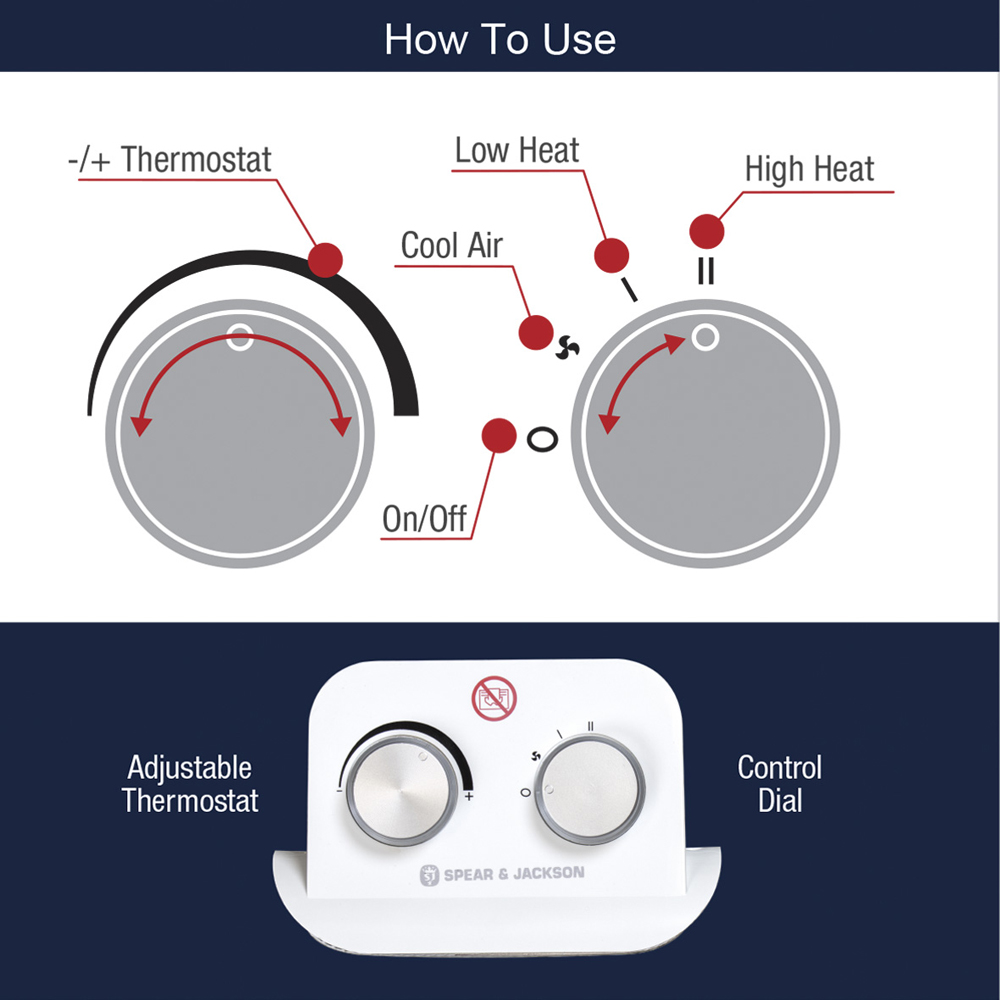 The Spear & Jackson PTC Ceramic Heater 1500W is a portable, quiet, and lightweight heating solution. It is perfect for use on a tabletop or on the floor in small spaces, whether it's at home or in the office. With an adjustable thermostat, you can easily switch between two heat settings - 750W and 1500W. Additionally, it offers a cool air setting, which is particularly useful during the warmer months. This ceramic heater utilises a PTC heating element, ensuring fast and efficient heating while consuming low energy. It works by circulating air through the PTC element to warm up your surroundings. For added peace of mind, the heater is equipped with overheat protection and a safety tip switch function. Its compact dimensions of 11 x 17 x 22cm make it convenient to place anywhere you need it.