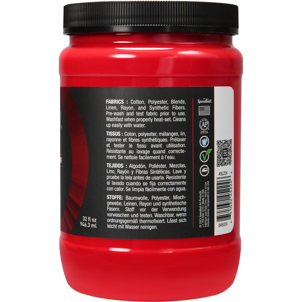 Speedball Flex™ Fabric Screen Printing Ink is an advanced water-based formula ink designed to be flexible across a variety of materials, whether white, light, or dark colour fabric. The ink delivers a bold, rich colour and is ideal for use on cotton, polyester, rayon, and synthetic fibres while resisting cracking or peeling when fabric is stretched or pulled. The fabric remains soft to the touch. The ink becomes permanent when properly heat set, and will maintain a rich, vibrant colour for the life of the garment.
