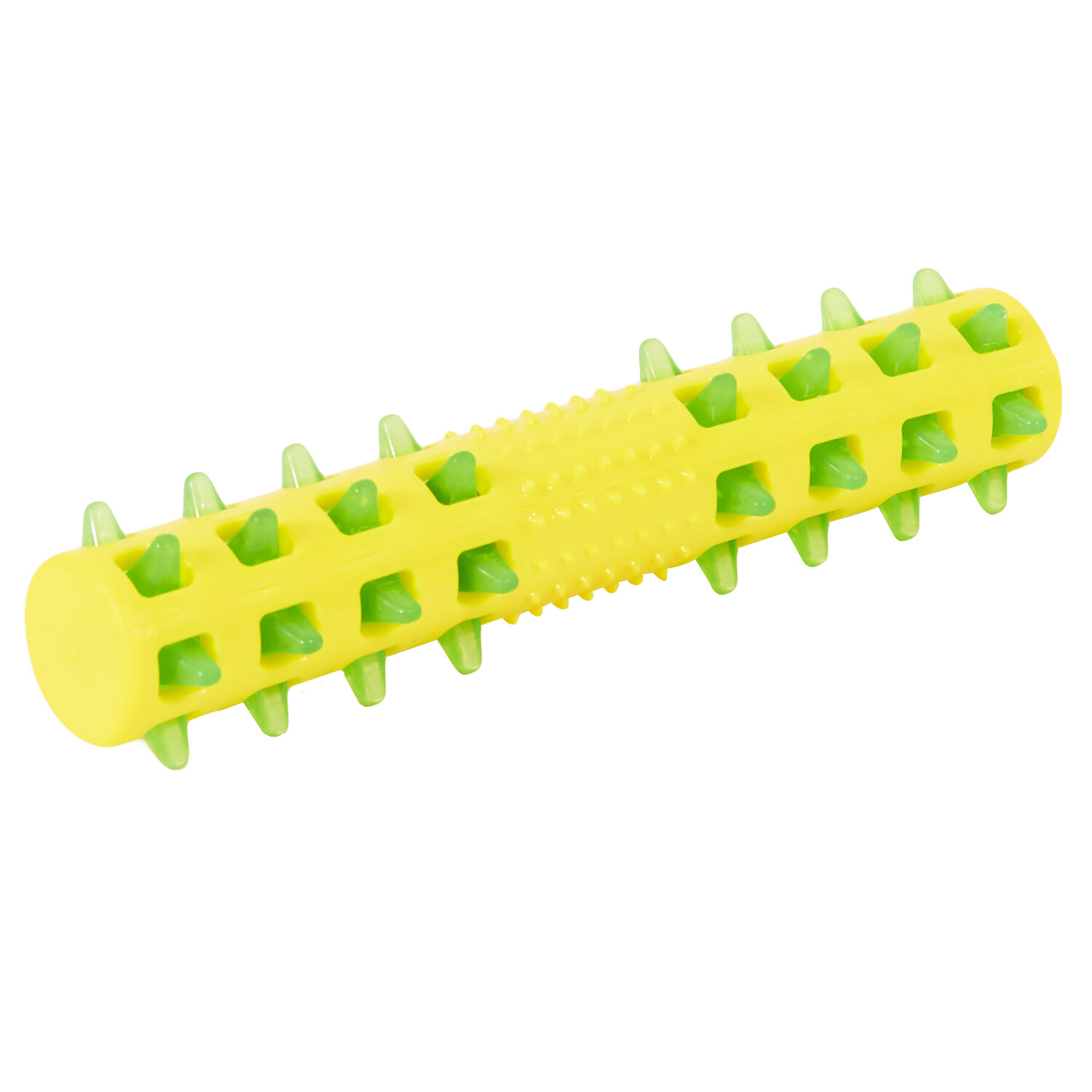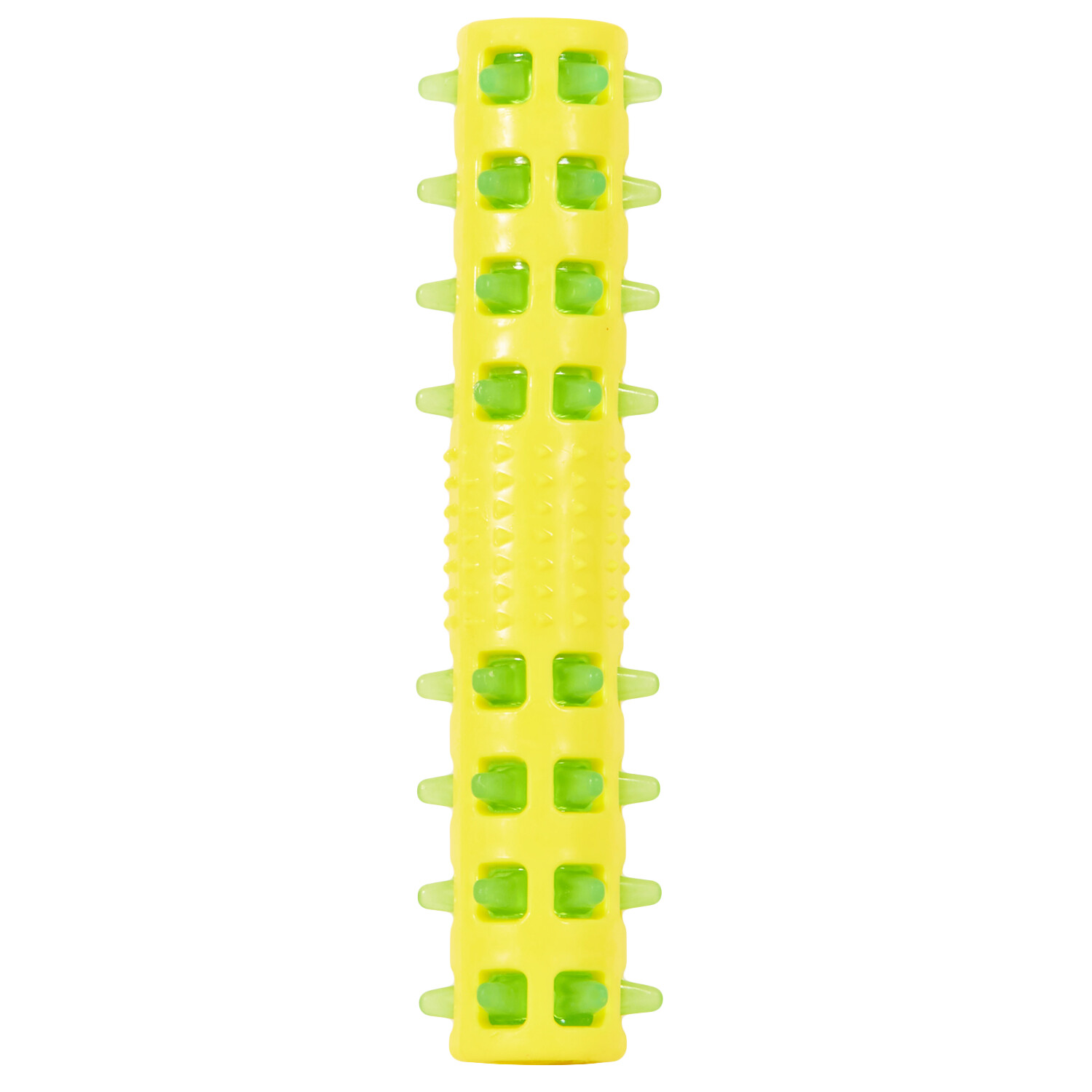 Get a fun and practical toy for your pet with the Spiky Flashing Stick. Available in an assortment of vibrant colours, it's perfect for games of fetch. The flashing light makes it easy to spot, even in the dark, adding an extra layer of excitement. Designed with nodules, it helps keep your pet's teeth clean as they play.