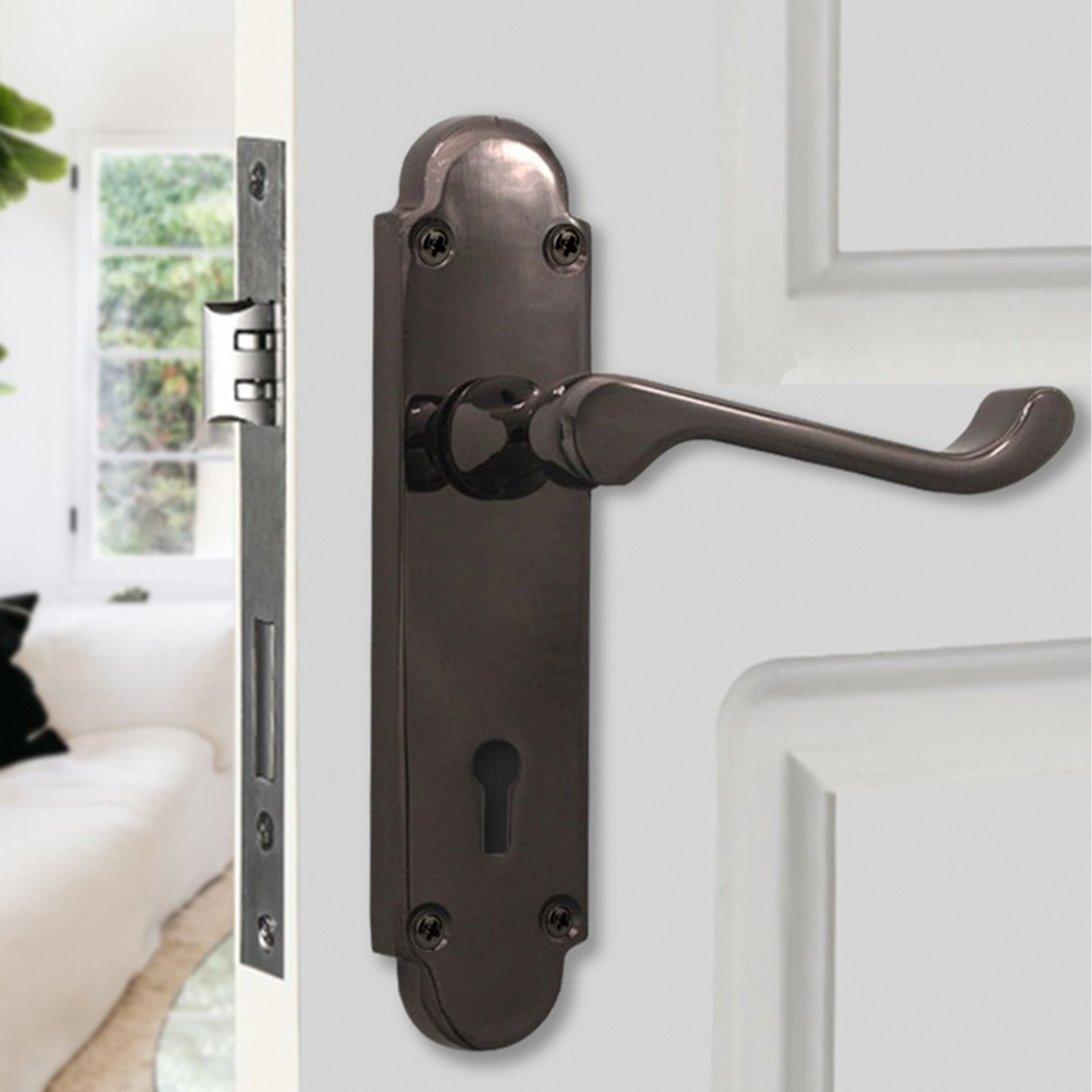 The traditional and modern styles, internal backplate door handles with standard keyhole profile offer a timeless design, featuring a comfortable 'Oklay' semi-circular head with scroll style lever for interior doors where you have decided to use lock type handles on backplate. Oakley Handle Specifications: Material: Zinc. Backplate Height: 165mm. Backplate Width: 40mm. Handle Length: 100mm. Handle Projection: 55mm. Backplate Thickness: 9mm.