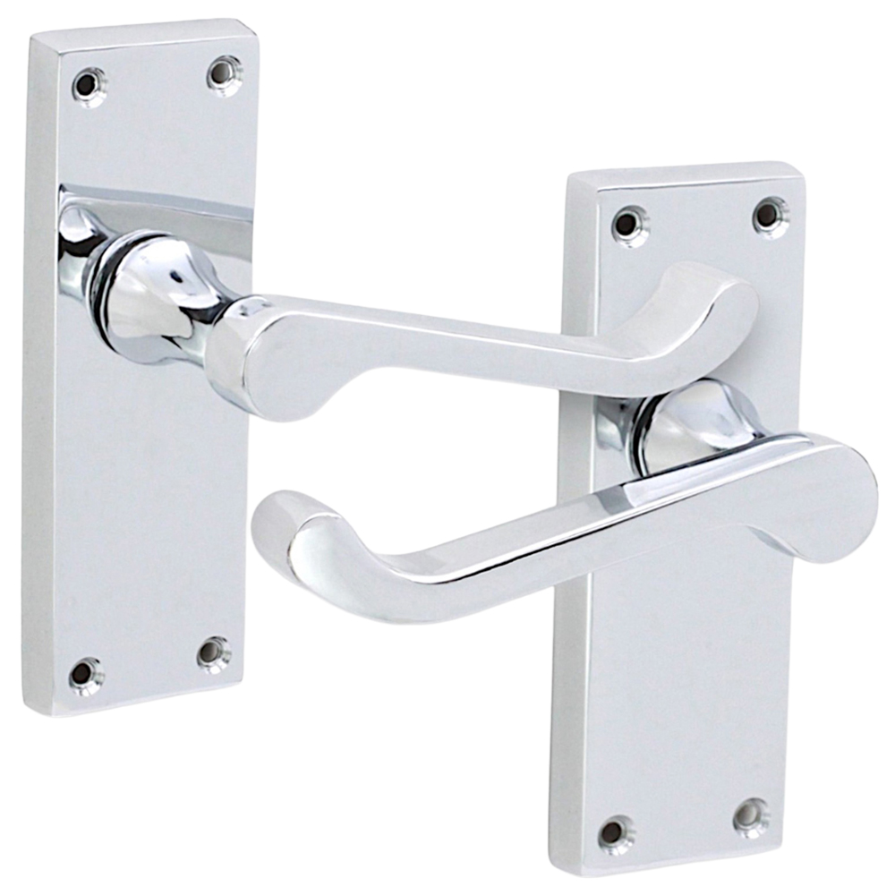 Spira Brass Victorian Polished Chrome Scroll Latch Lever Door Handle 2 Pack