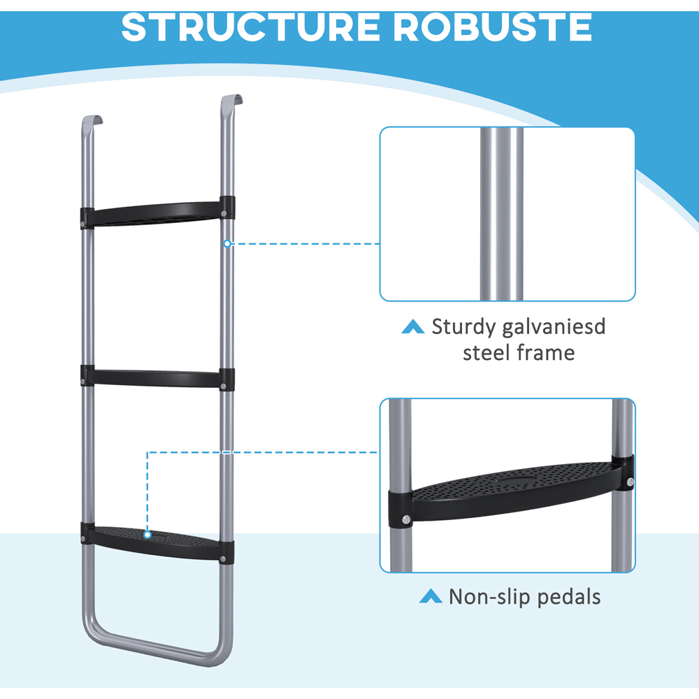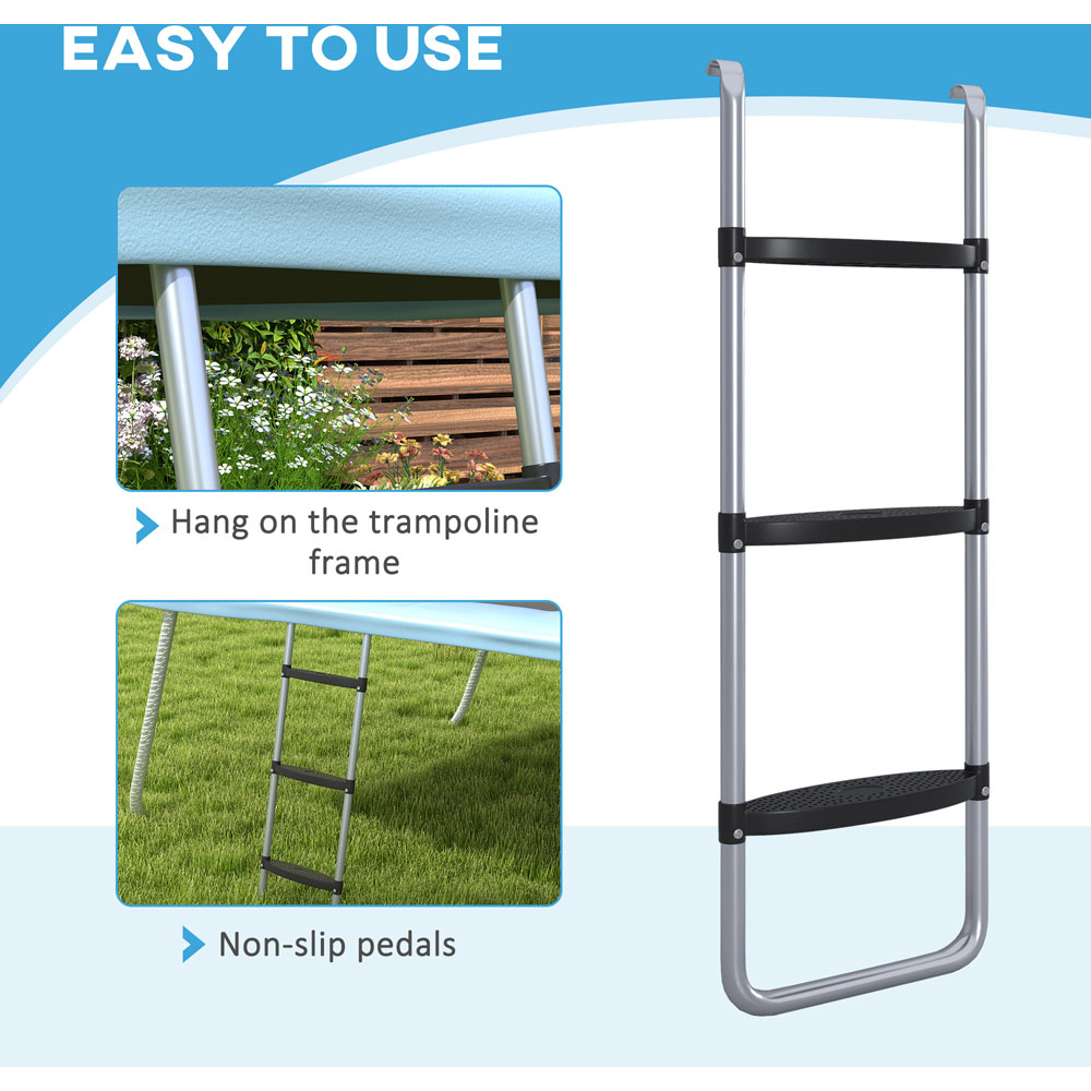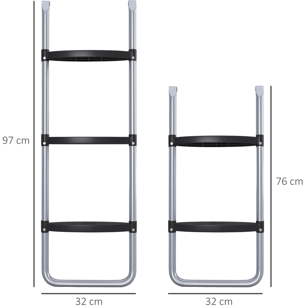 Discover the versatility of SPORTNOW's innovative ladder, which easily adjusts to your needs by converting from a 3-step to a 2-step ladder. Constructed from galvanised steel for enhanced stability and lasting durability, it's a great addition to your trampoline. Its user-friendly design ensures effortless setup and removal. Enhance your trampoline's accessibility and safety by investing in the adaptable ladder today. 3 or 2 steps: Easily transform the ladder by removing the middle section. This ladder for trampoline ensures safe climbing and descending, effectively reducing the risk of leg injuries and falls. Galvanised steel frame: Designed to resist rust, ensuring long-term safety without deteriorating, even when exposed to the elements. Boasts a weight capacity of 120kg. Universal fit: Compatible with most standard round and rectangular trampolines ranging from 6 to 16ft.