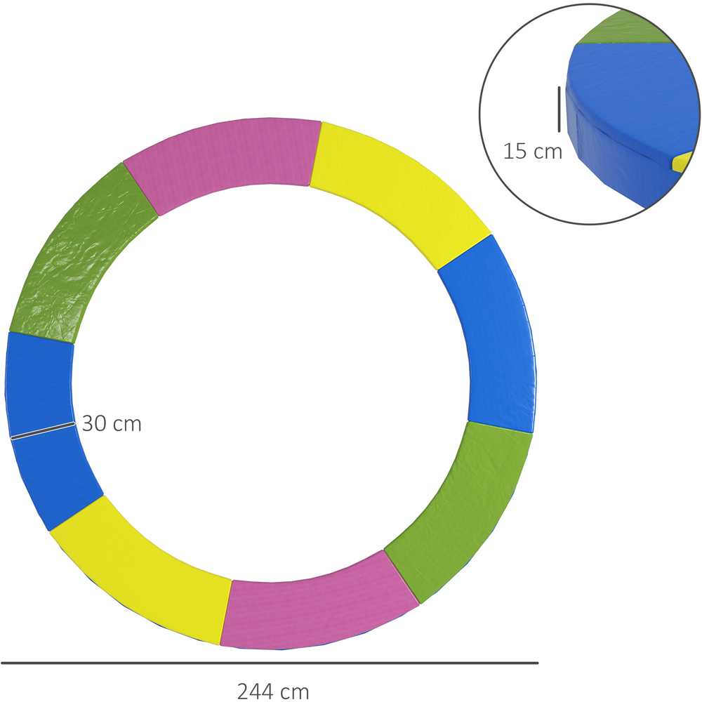 Protect yourself from trampoline injuries with the SPORTNOW 8ft trampoline padding replacement. Made of high-density foam, it provides a comfortable and safe surface over the springs and steel edges. The pad perfectly fits garden trampolines with round frames, ensuring maximum coverage and durability. Enjoy endless hours of worry-free entertainment with this reliable accessory. Enhanced Safety: The trampoline replacement pad contains thick EPE foam, which ensures that no fingers, toes, or hair get stuck in the springs. Streamlined Setup: Unfold the trampoline replacement padding and fasten it to the trampoline frame with elastic straps underneath without the need for any tools. Reinforced Material: The trampoline spring pad is crafted from 500D plastic and 128g/㎡ PE material, ensuring it maintains its shape. Its thick, broad design ensures safety.