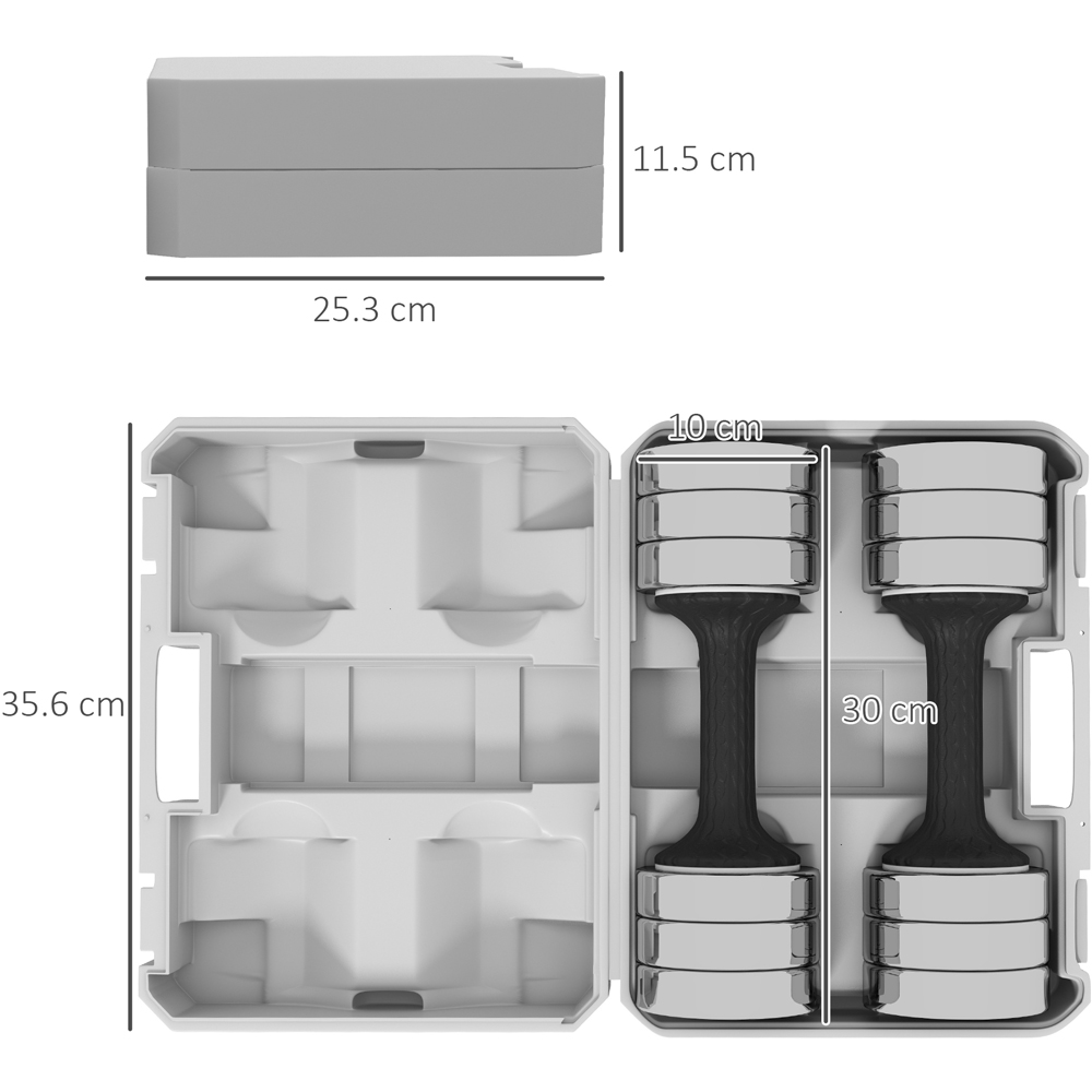 Worrying about lack of exercise? These SPORTNOW dumbbells are your solution. Whether it's squats, arm curls, lunges, shoulder shrugs or another exercise, you'll get the absolute most out of your workout, making sure you feel the burn. 1.5kg plates are removable to suit your training needs. It comes in a storage box, so you can take these weights and exercise from anywhere. You don't need a gym to build strength