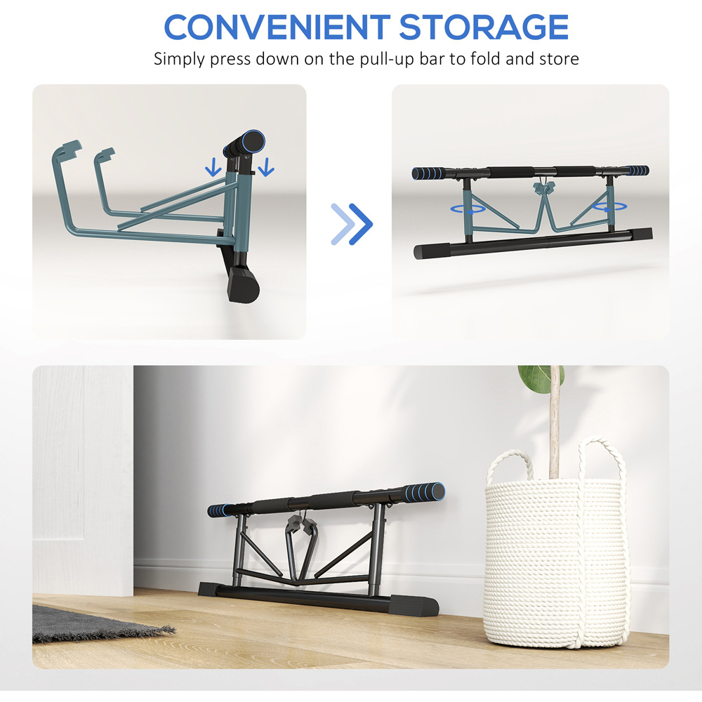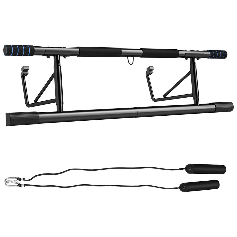 Transform your doorway into a fitness hub with the SPORTNOW Pull-Up Bar! This installation-free gym bar easily hangs on door frames (80-100cm wide) and is great for pull-ups. Crafted from robust steel and featuring comfy EVA foam handles, it's your go-to for a solid workout at home. Installation-free design: Easily hang this gym bar on your door frame without installation. (Suitable door frame width: 80-95cm, requires at least 2.5cm of space on each side. For walls made of concrete or solid brick with a thickness of 10-24cm). Added resistance: This chin-up bar includes resistance bands, enabling you to target multiple muscle groups for a comprehensive workout that improves strength and flexibility.
