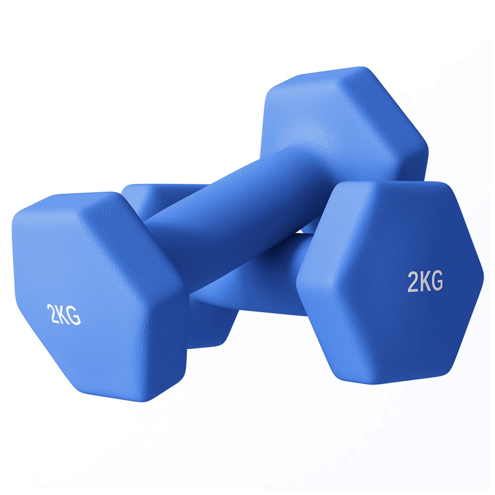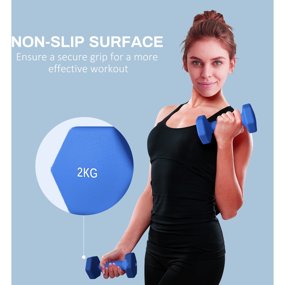 Exercise at home with the SPORTNOW dumbbell set. Featuring two hand weights, they're great for bicep curls, shrugs, lunges and much more. Its hexagonal shape stops the weights from rolling off – they'll stay right where you left them. Non-slip handles ensure a secure and comfortable grip, so you can work out confidently. Convenient and easy to use, turn your home into a mini fitness centre, keeping you active and healthy. Plastic covering: These weight sets are designed to protect your floors from damage.