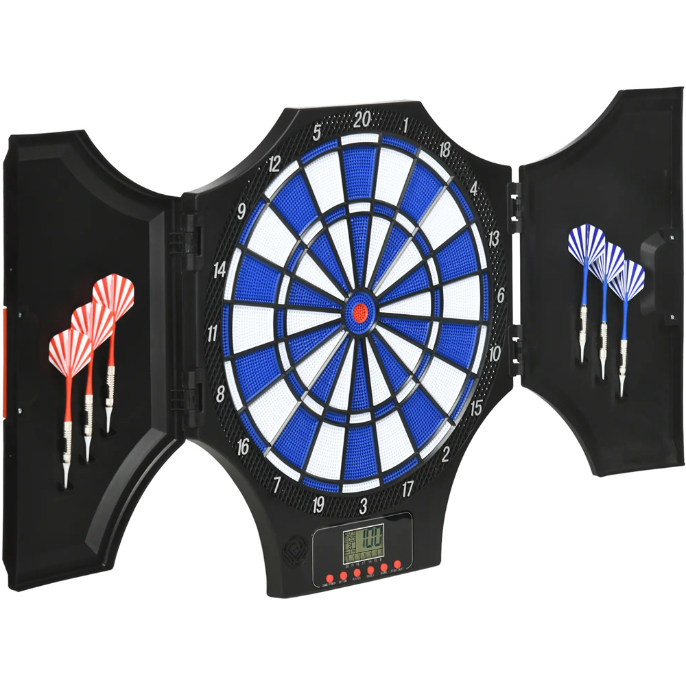 Enjoy endless hours of fun and competition with this SPORTNOW electronic dartboard. It has 31 games and 285 programs that can accommodate up to eight players—great for parties, gatherings, and family game nights. The LCD screen displays the players and scores per round, so there will be no debate on who's the best! Two side doors protect the surrounding walls from missed shots. When the doors are closed, dust is kept off the dartboard to keep it in good condition—a simple way to liven up your days.