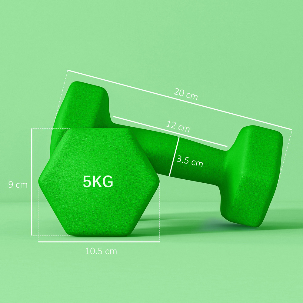 Exercise at home with the SPORTNOW dumbbell set. Featuring two 5kg hand weights, they're great for bicep curls, shrugs, lunges and much more. Its hexagonal shape stops the weights from rolling off – they'll stay right where you left them. Non-slip handles ensure a secure and comfortable grip, so you can work out confidently. Convenient and easy to use, turn your home into a mini fitness centre, keeping you active and healthy.