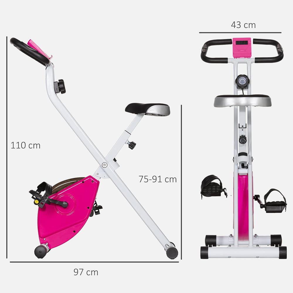 Stay active at home with the SPORTNOW exercise bike, offering eight levels of magnetic resistance for a silent, customised workout, suitable for all fitness levels. The seat adjusts to eight different heights for a perfect fit. Track your progress on the LCD monitor, displaying speed, time, calories burned, distance and heart rate. Enjoy entertainment with the phone or tablet holder. When you're done, fold the bike for space-saving storage, ready for your next session. Quiet eight-level magnetic resistance: Choose a comfortable resistance and start going, making this exercise bike suitable for all fitness levels. Foldable exercise bike: Easy to store and transport, it has built-in wheels for effortless movement when not in use. 75-91cm adjustable seat: This indoor bike has eight levels – easily adjust the seat to a comfortable height, ensuring correct posture while exercising.