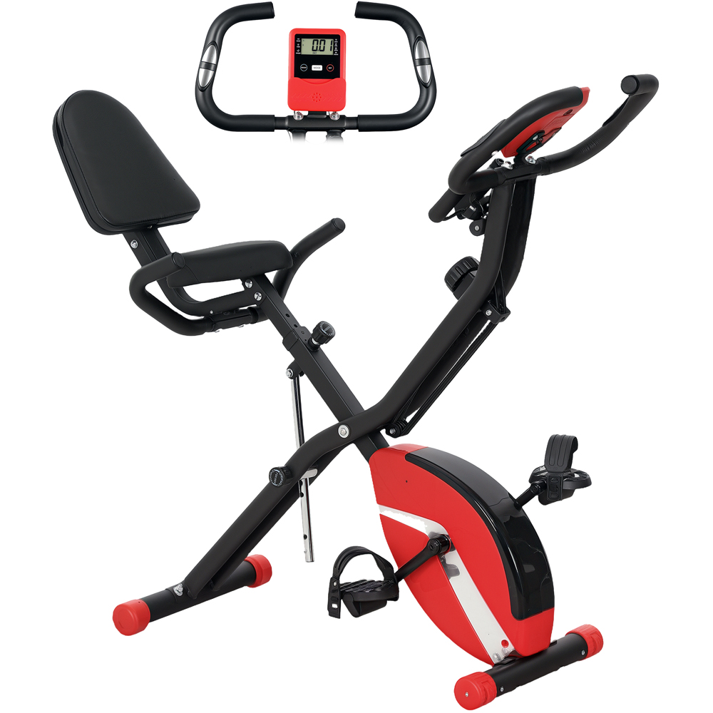 Transform your fitness routine with the SPORTNOW foldable bike. Choose from five riding positions, including recumbent and upright, to customise your workout. With 8-level adjustable magnetic resistance, enjoy a smooth, silent cycle every time. Plus, it's a breeze to store and move around, thanks to its compact, fold-away design. Versatile five positioning: Transform your stationary bike routine with five adjustable positions. Switch between recumbent, semi-recumbent and upright styles to target different muscle groups. Plus, arm resistance bands are included to engage your arms. Comfortable seating: Achieve the great fit with the static bike's adjustable seat, ranging from 73 to 83 cm in height. The padded seat cushion (27 x 22 cm) and supportive backrest offer comfort during longer workouts. For users from 155-180 cm. Smooth cycling: Experience quiet workouts with the 8-level adjustable magnetic resistance on this indoor exercise bike, whether you prefer a light warm-up or a more challenging ride, this bike offers smooth, quiet cycling with every pedal stroke.