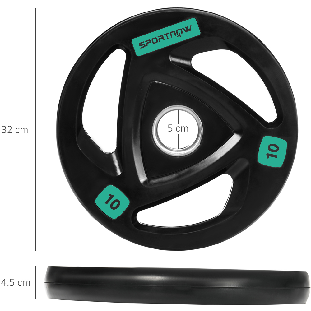 Looking to build strength? Start with these SPORTNOW weight plates. A set of two, they have a 5cm hole in the centre, so it can be attached to Olympic bars, curl bars, trap bars and squat bars, whilst the three grip holes allow you to pick them up with ease – perfect for lateral raises and more. Made from steel, it's wrapped in rubber, so it won't damage your floor if dropped. A compact size, they don't take up much space – perfect for weight training at home, the office or even outside.