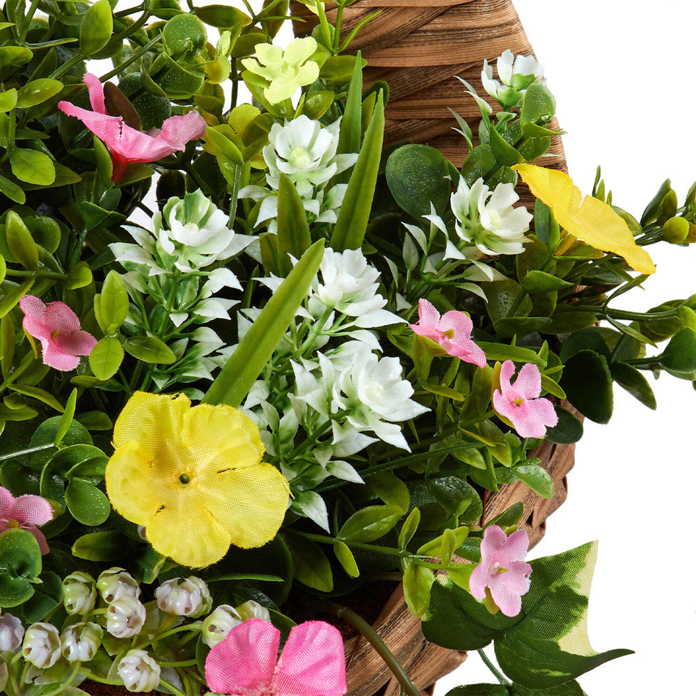 Bring a touch of springtime to your home by hanging this bold and colourful Spring Floral Wall Basket in your space. Crafted to look like a traditional hanging basket, it's filled with bright faux plants and flowers to spread joy in any room. Highly detailed and easy to hang, this charming floral ornament will look fabulous in the living room, hallway, or bedroom, giving you all the benefits of a basket full of flowers without the upkeep.