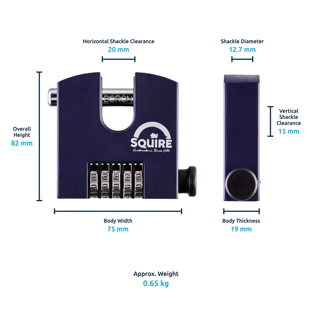 - Features 12.7mm hardened steel shackle