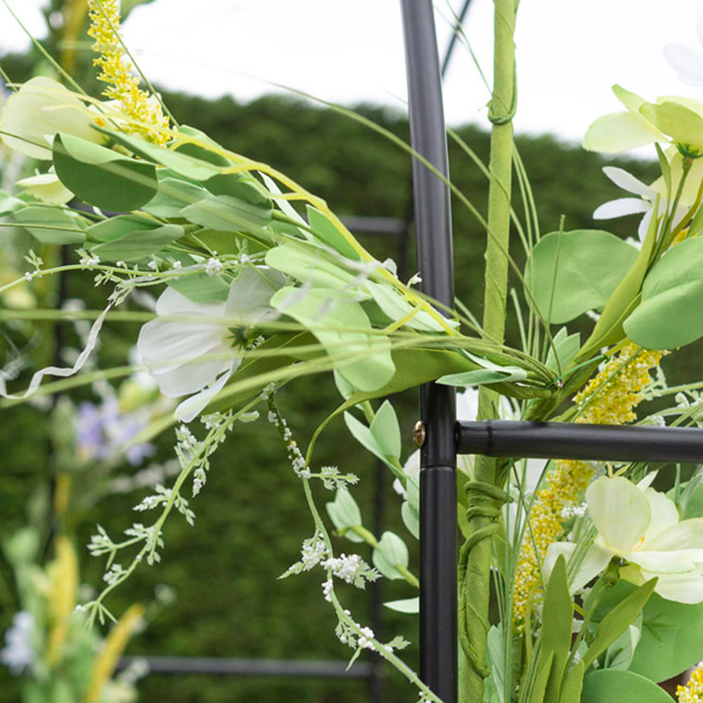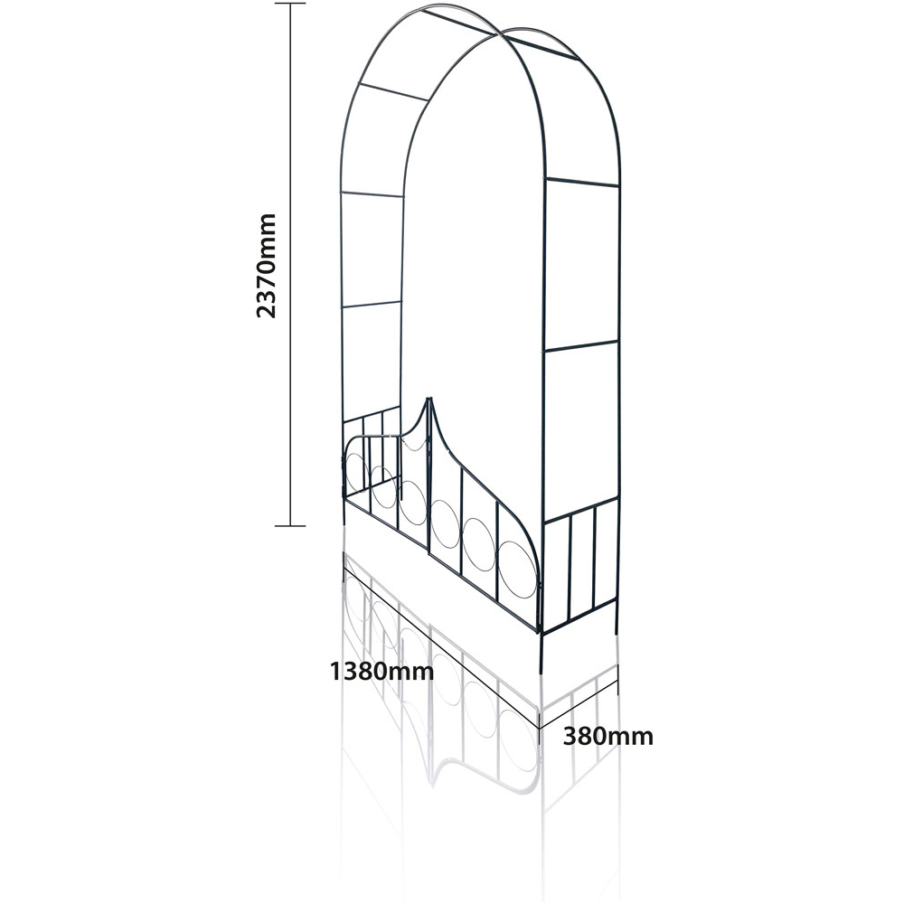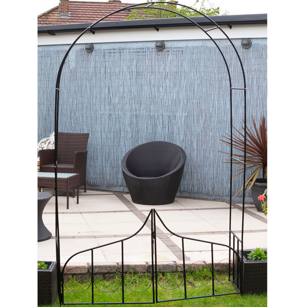 Support the healthy growth of climbing plants, vines and flowers with St Helens Garden Arch with Gate. Suitable for decorating your garden - use this versatile arch in your garden at any time of year to create a beautiful garden entrance or walkway. Lights can be hung from the arch to provide extra illumination and ambience at night. Powder-coated to ensure durability and weather resistance, ensuring many years of enjoyment. The arch is easy to assemble and is installed by simply pushing the legs into the ground.