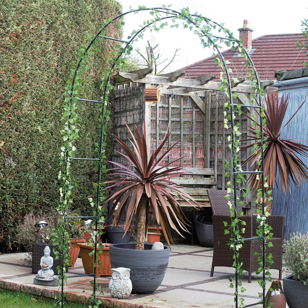 Create stunning displays in your garden with St Helens Decorative Garden Arch. It provides a supportive archway for climbing plants, vines and flowers. This versatile arch can be also used to hang lights to provide extra illumination and ambience at night. Easy to assemble - it is installed by simply pushing the bottom 40cm of the arch into the ground. Power coated to ensure durability and weather resistance, ensuring many years of enjoyment. The arch is supplied in green to ensure that it blends in seamlessly with your garden environment.