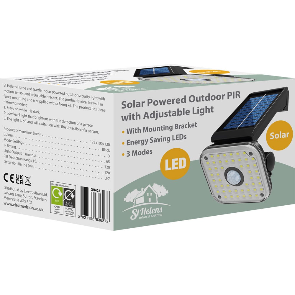 St Helens Black Solar Powered Outdoor PIR with Adjustable Light