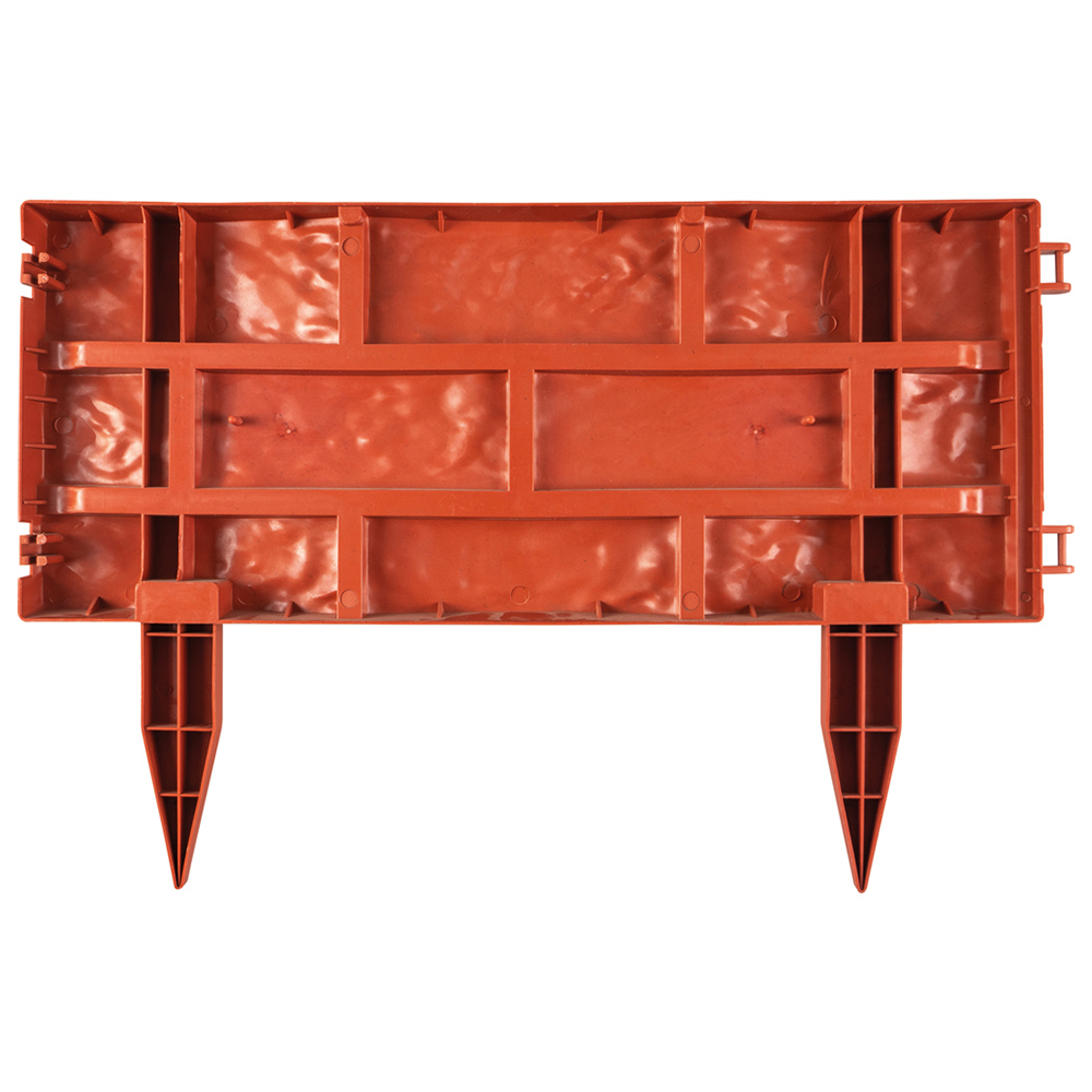 The terracotta brick effect garden edging fence from St Helens is the perfect way to edge and define lawns, paths and borders in your garden. Also ideal for making a decorative feature around trees or water features. It will enhance the look of any garden thanks to its terracotta brick effect design. Made from plastic for durability and weather resistance, suitable for use all year round. The panels are interlocking, so simply connect as many panels as you require for each section of your garden. Each panel has two ground spikes for easy insertion into gravel or soil.