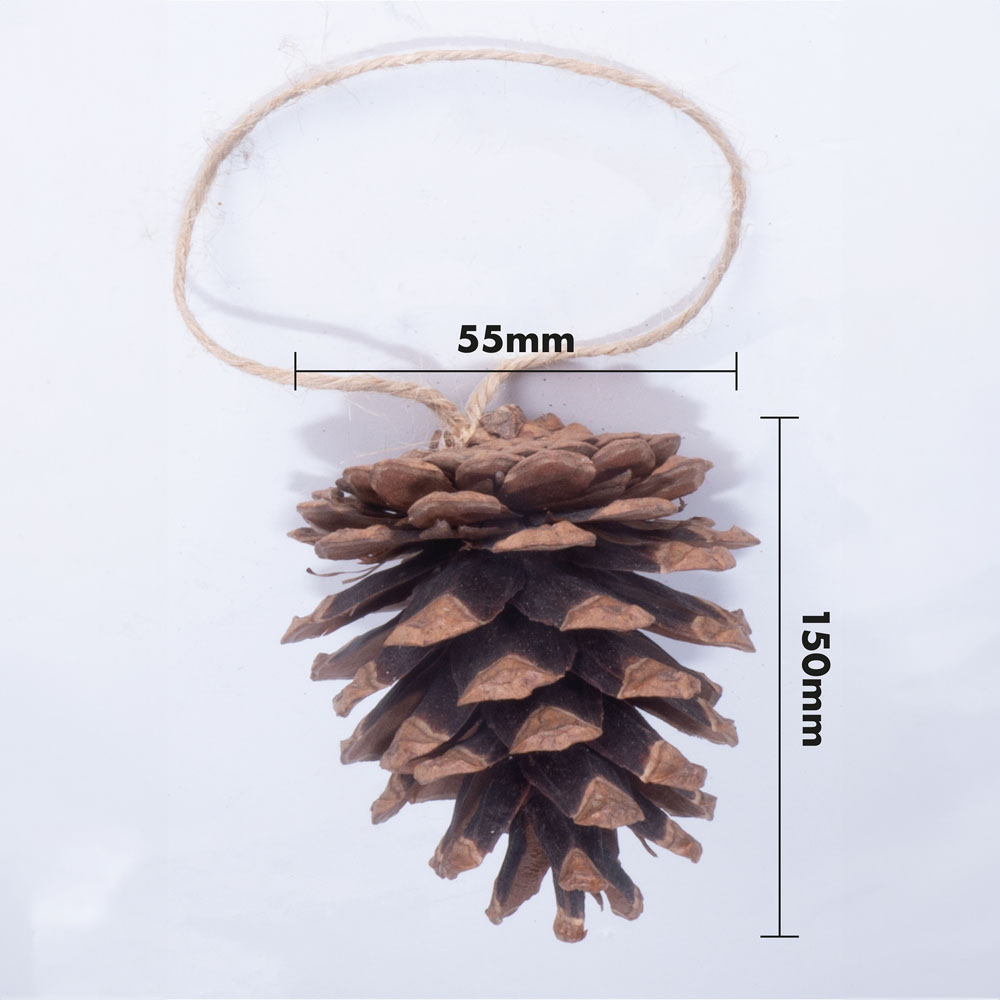 Give a perfect festive touch to your Christmas Tree with the St Helens Hanging Pine Cone Decoration. With a brown exterior, the pine cones feature a natural effect to add a Christmasy feel to your interiors. Offering a rustic touch, you can also use these pine cones as a temporary display for Christmas parties, model villages, Santa's grottos and more. Plus, if you do not want to hang the pine cones, simply cut off the string and use it for crafting and household displays. Pack of 6. Size: 15 x 5.5cm.