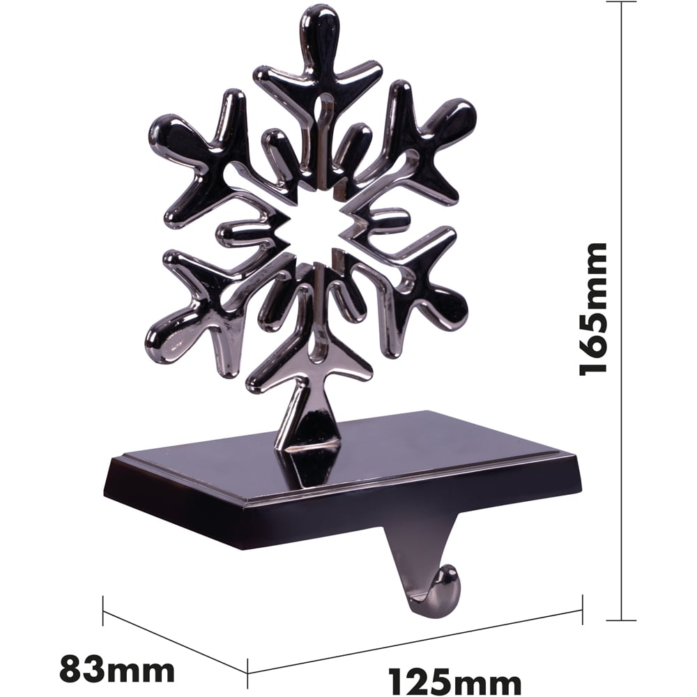 Bring festive cheer to your home with a pair of charming snowflake stocking holders, designed to sit beautifully on fireplaces, shelves or window ledges without the need for nails or hooks. Crafted from durable aluminium alloy, each weighted holder keeps stockings secure and adds a delightful seasonal touch, while a soft underside protects your surfaces. Simply hang your stockings and look forward to the magic of Christmas morning.