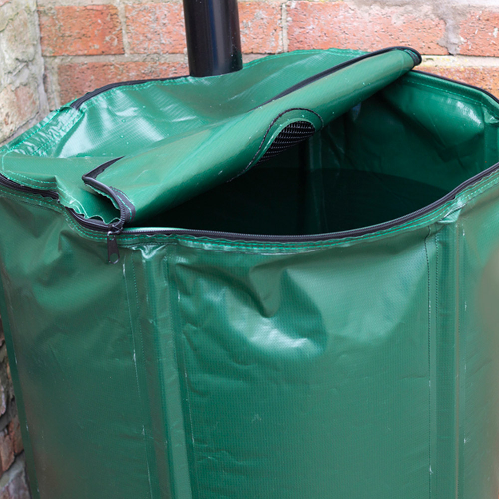 Collect and store rainwater with St Helens Collapsible Rain Barrel. The rain barrel allows you to conserve water and help to reduce runoff and soil erosion. Rainwater is a healthier choice for plants and provides you with water during droughts and hose pipe bans. A rain barrel can also dramatically reduce the amount of water you use from your home water supply during the summer months and beyond, saving you money in the process. Place the barrel under a roof or downspout and wait for it to rain. Rainwater will run directly into the barrel and is stored until it is needed. The barrel features a tap and valve at the bottom, which allows you to connect a hose pipe directly to it. The top of the barrel is secured with a zip, and the water hole is covered in a mesh material that allows water to flow freely in, but leaves and small animals are kept out. Excess water will flow out of the top overflow pipe. The barrel is easily taken down and folded for storage when not in use.