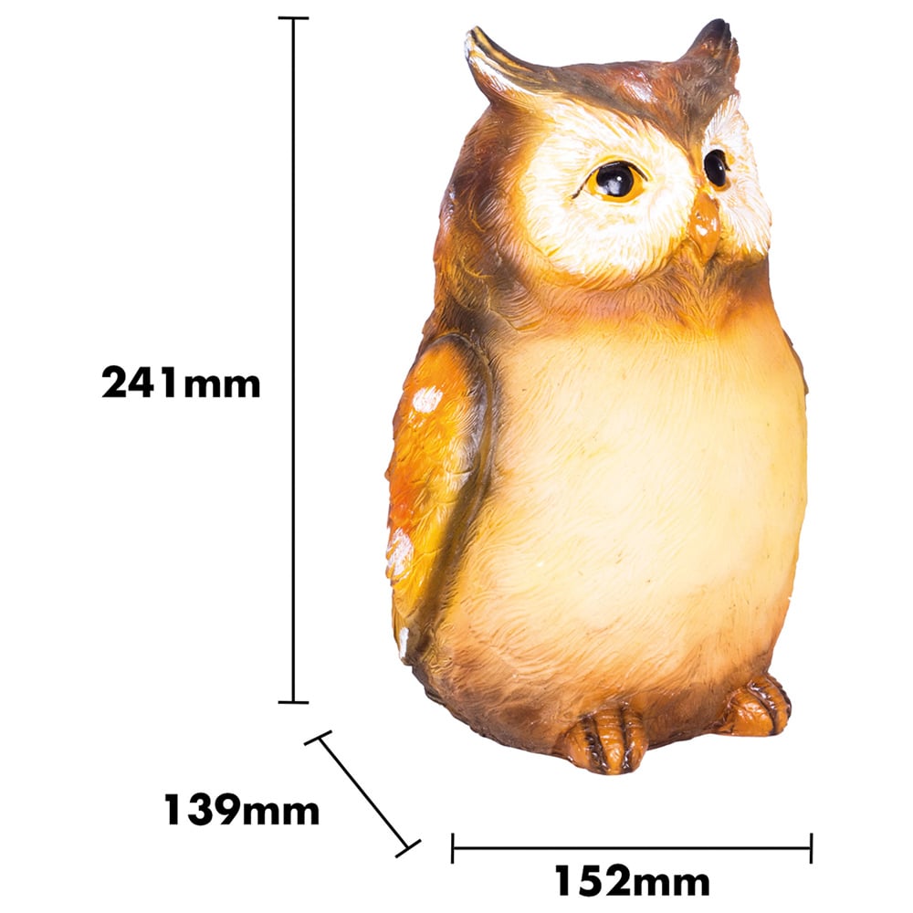 Brighten up your garden and lawn at night with St Helens Female Light Up Owl. Hattie and Ophelia are beautiful and quirky solar garden ornaments that charges up during the day by absorbing sunlight. Painted in beautiful, vibrant colours - it enhances the look of any garden whether it be day or night. Made from durable resin - it is waterproof and withstands harsh weather when placed outdoors.