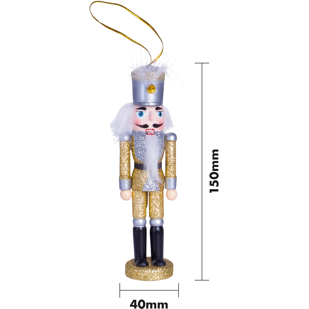 Bring festive cheer and a hint of tradition to your home with gold and silver nutcracker ornaments, featuring sparkling uniforms and classic hats that shimmer under your Christmas tree lights. Inspired by German folklore, these decorative figurines symbolise good luck and protection, making them perfect for your mantel, window ledge or coffee table as well as hanging on the tree. Flat bases allow easy display anywhere, so you can enjoy their charm throughout your festive space.