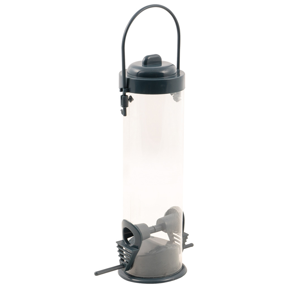This hanging bird feeder from St Helens Home and Garden is perfect for attracting and feeding wild birds. There are two feeding points at the base of the feeder both with a perch. The top is removable allowing you to easily fill the feeder with seed or grains. The feeder is a generous 22.5cm in height meaning it can hold a large amount of seed for infrequent filling. The seed compartment is transparent making it easy to see when you need to refill. The strong handle can be used to securely attach the feeder to trees or other structures, place it in a prominent place in your garden and enjoy watching the wild birds as they come and go.