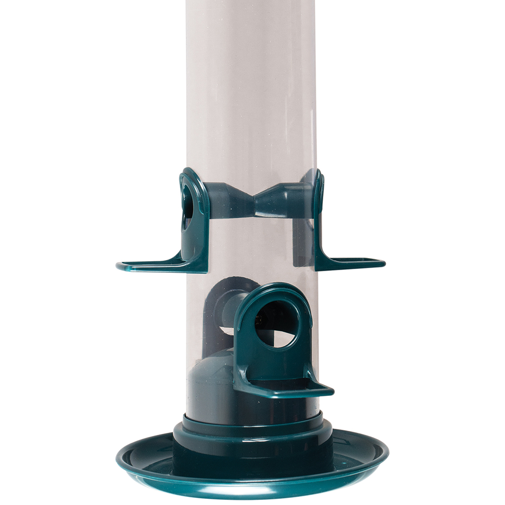 This hanging bird feeder from St Helens Home and Garden is perfect for attracting and feeding wild birds. There are four feeding points at the base of the feeder all with a perch. The top is removable allowing you to easily fill the feeder with seeds, grains, nuts or worms. The feeder is a generous 34cm in height meaning it can hold a large amount of food for infrequent filling. The seed compartment is transparent making it easy to see when you need to refill. The strong metal handle can be used to securely attach the feeder to trees or other structures, place it in a prominent place in your garden and enjoy watching the wild birds as they come and go.