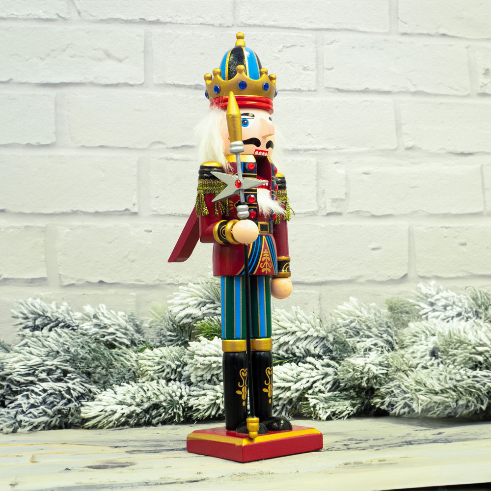 Create the perfect festive atmosphere at your home with this St Helens Multicolour Christmas Nutcracker with Staff. The vibrant colour uniform is a festive combination and looks particularly striking with the twinkling lights of your Christmas tree. In the German tradition, nutcrackers are symbols of good luck and protect your home by warding off evil spirits. This nutcracker decoration stands flat, making it easy to place on window ledges, fireplaces or coffee tables. With it's shiny finish it makes for a perfect ornament for your Christmas decor. Dimensions: 300 x 75mm.
