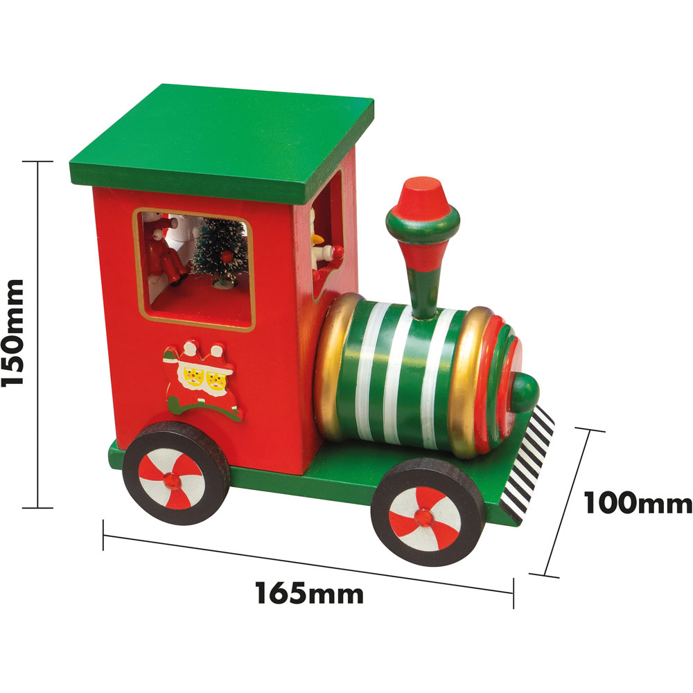 Bring a touch of festive magic to your home decor this festive season with St Helens Multicolour Wooden Train Music Box. Featuring a vibrant red and green colour - this train music box is sure to catch the eye among the twinkling lights of your Christmas tree. The train is mechanical, therefore it doesn't require batteries. To enjoy the calming music - simply turn the winder located underneath. You can stop the music at any time by pushing the lever at the back and pull it back out to restart the music. While the music plays, the Christmas tree inside the train rotates slowly. This beautiful set would make a thoughtful Christmas gift - it would also look great displayed on a coffee table, window sill, or fireplace. Crafted from high-quality wood, the train has a wonderfully old-fashioned feel. Get your hands on this Musical Christmas Train today! Note: The train is not a toy.