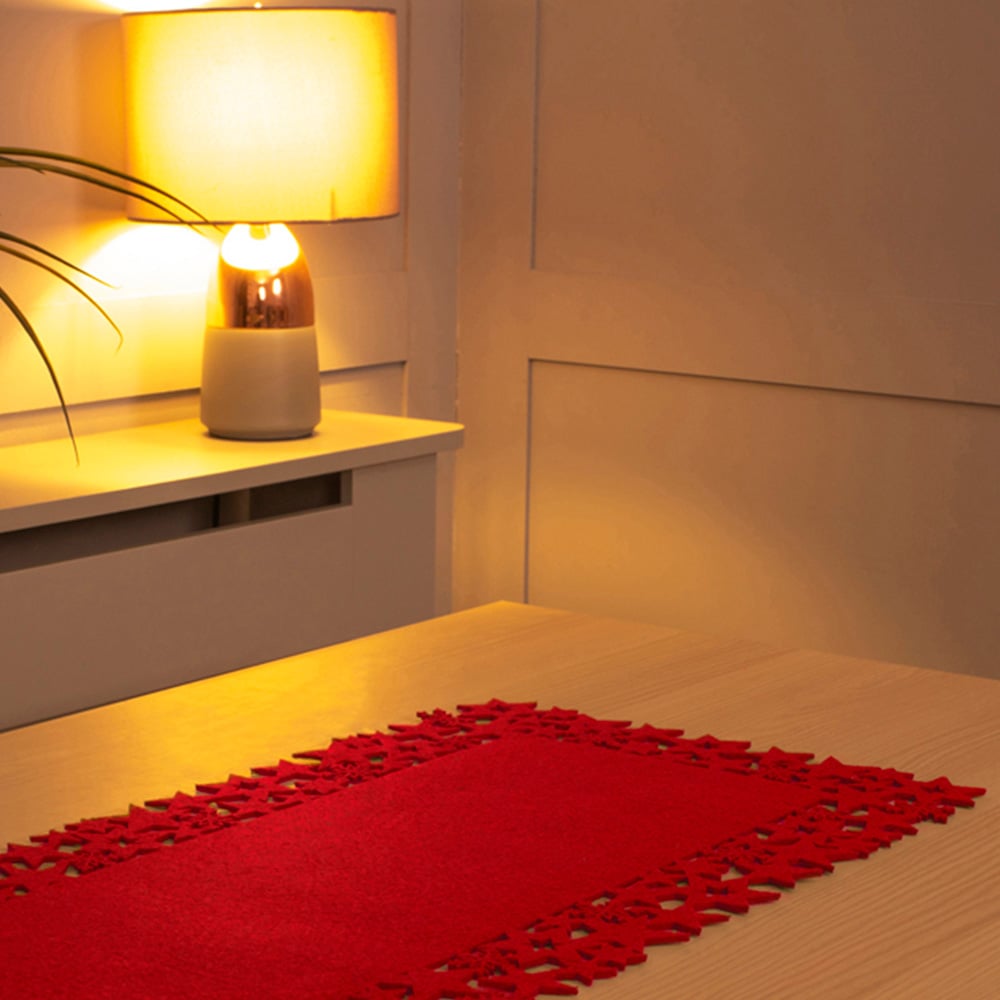 Bring sparkle to your table this Christmas with this St Helens Openwork Star and Snowflake Red Felt Table Runner. Featuring beautiful openwork stars and snowflake design - it will enhance the look of any dining room. Made from a durable 3mm thick felt material making it heat resistant and long lasting - it ensures your table is kept clean and dry. The felt is easy to clean with with warm water. The runner can be used all year round to add a dash of colour but is particularly suited to use during the festive period thanks to its openwork star and snowflake design. Size: 98 x 30cm.