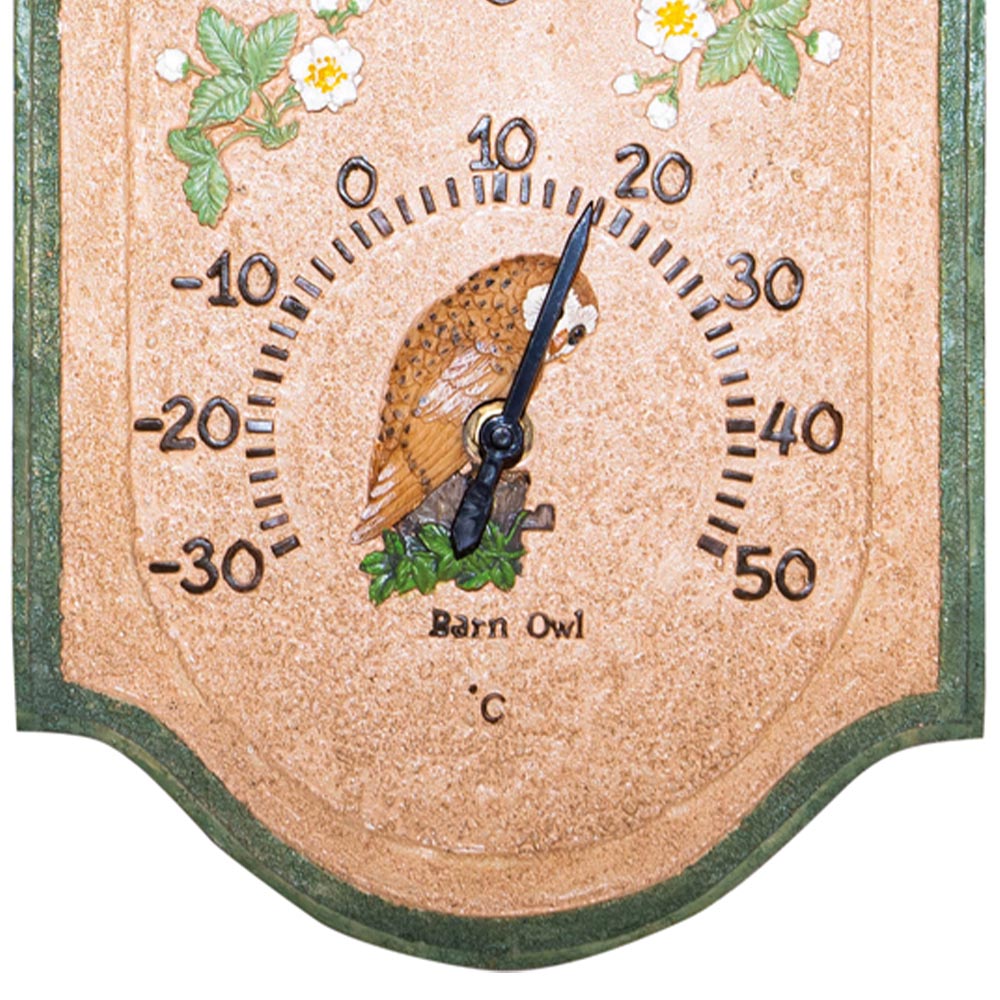 This fabulous decorative outdoor wall clock from St Helens Home Garden would make a welcome addition to any garden thanks to its charming owl design. The clock features a handy thermometer which reads in C from -30 deg C to 50 deg C. The clock is hand-painted and made from polyresin, making it long-lasting and suitable for the rigours of outdoor use. Supplied with a fitted metal hanging bracket, meaning it is extremely quick and easy to mount on outdoor walls, fences, summer houses, conservatories and sheds. Sit back and enjoy the beauty of your garden and watch time go by. The clock requires a 1x AA battery (not supplied).