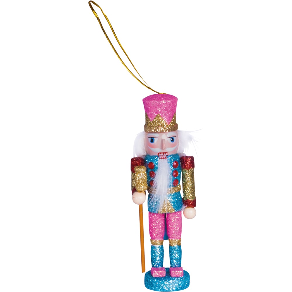 Bring festive cheer to your home with vibrantly coloured nutcracker figures that shimmer under Christmas lights and capture the magic of tradition. Pink, blue and red uniforms with glitter accents make each wooden soldier a striking addition to your seasonal décor, whether hanging from the tree or standing proudly on your mantelpiece, window ledge or coffee table. Inspired by German folklore, these nutcrackers not only brighten your space but also symbolise good luck, making them a delightful ornament for every Christmas celebration.