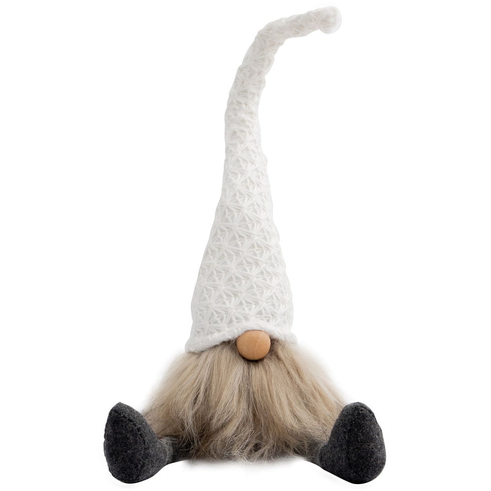 Delight your family and friends this Christmas by introducing the St Helens White Gonk Christmas Decoration 43cm to your home. This lovely decoration features a lovely gnome in a sitting position and he is dressed in a white hat and dark grey socks for a festive look. Its sitting position makes it great for keeping the legs dangling over fireplaces, coffee tables and stairs! Perfect for use as a part of a temporary display for Christmas parties, model villages, Santa's grottos and restaurants and bars.
