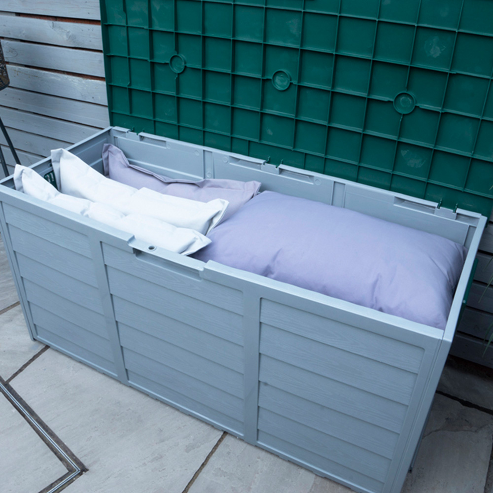 Keep your garden tools and equipment in one place with St Helens Large Outdoor Storage Box. This attractive wooden panel effect storage box is large and big in style. Made from polypropylene - it is lightweight yet durable. Ideal for garden tools, equipment and furniture covers - it is also perfect for children's outdoor toys and furniture cushions when not in use. Supplied flat-packed - it is extremely quick and easy to assemble and provides a very generous 296 litres of storage.