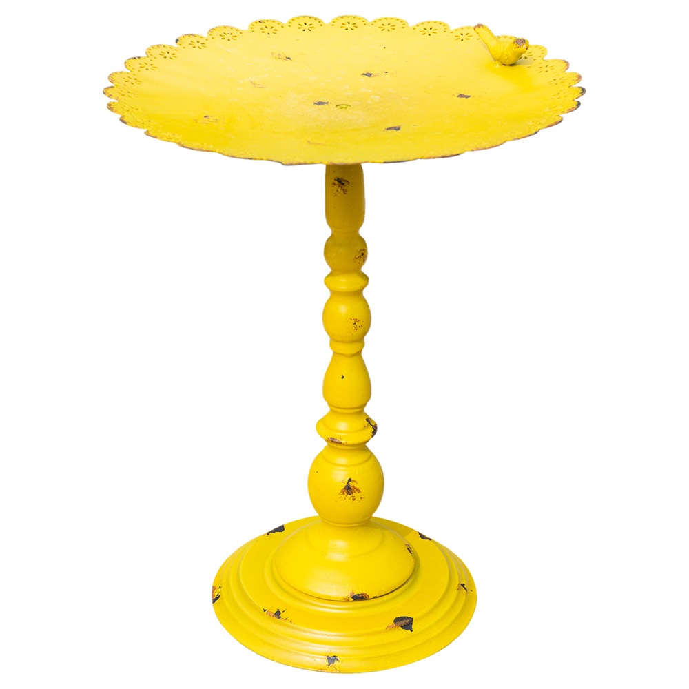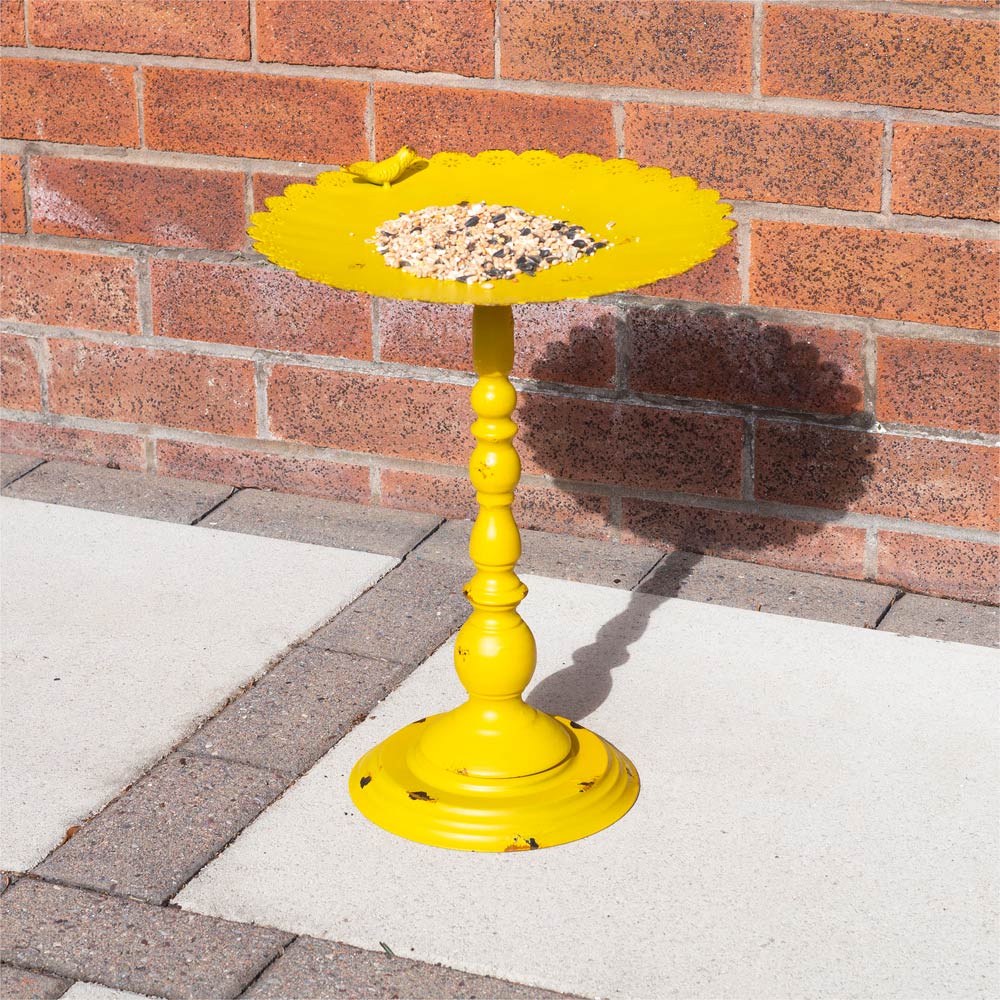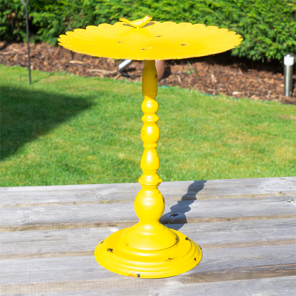 This ornamental Yellow Metal Bird Bath from St Helens will enhance the beauty of any garden and attract a large variety of wild birds all year round. The bath is supplied in distressed yellow to give a touch of colour to your garden all year round in every season. Made from strong and durable, weather-resistant metal giving you many years of use. The bird bath is freestanding so simply place it in a prominent position in your garden and watch the wild birds as they come and go.