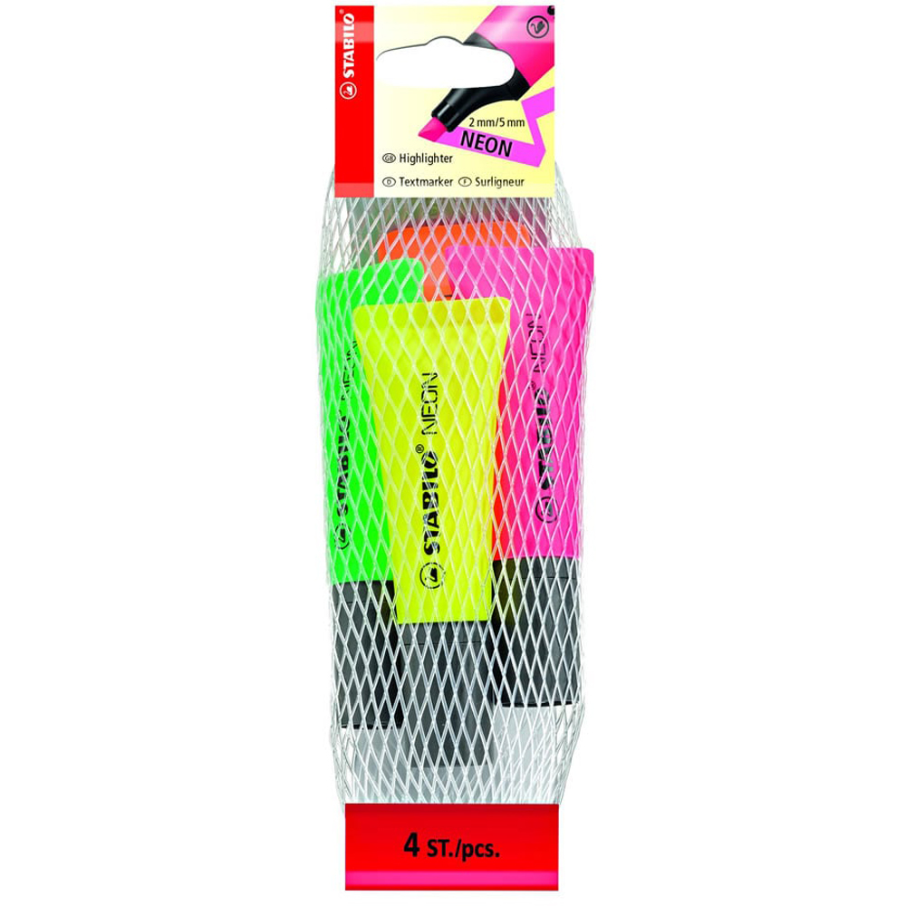 Brighten up project work and easily reference important information with STABILO Neon Highlighters. It comes in a fashionable tube design that won't roll off your desk and looks super cool in any pencil case. The marker has a soft grip surface for a convenient and comfortable hold. With water-based, high fluorescent ink - it provides up to 4 hours of cap-off time. Pack of 4 in yellow, orange, green and pink colours.