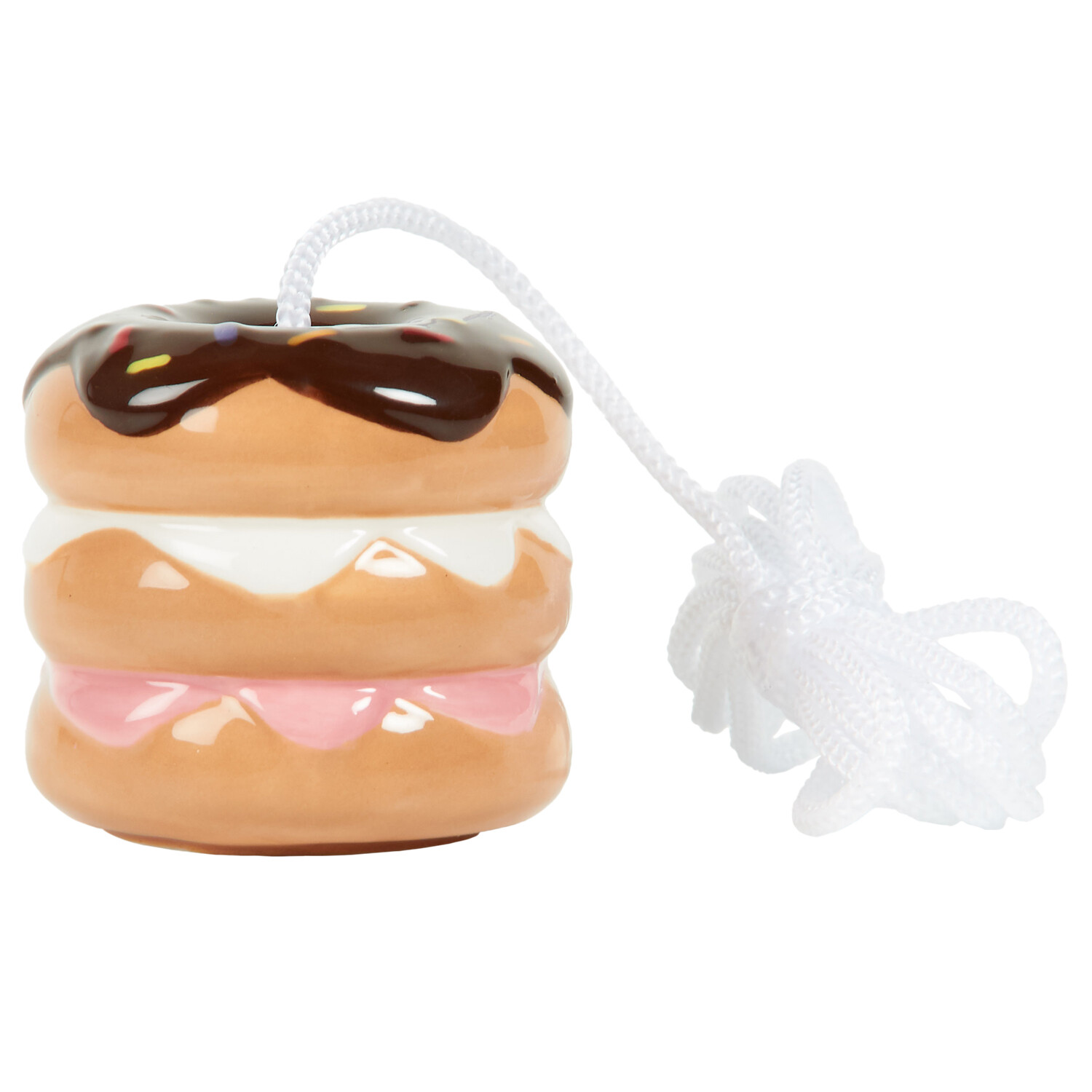 Add whimsy to your space with this Stacked Doughnut Light Pull. Featuring a stack of colourful doughnuts, this playful accessory adds a fun twist to any room. It is perfect for bathrooms, bedrooms or any other space with a pull cord.