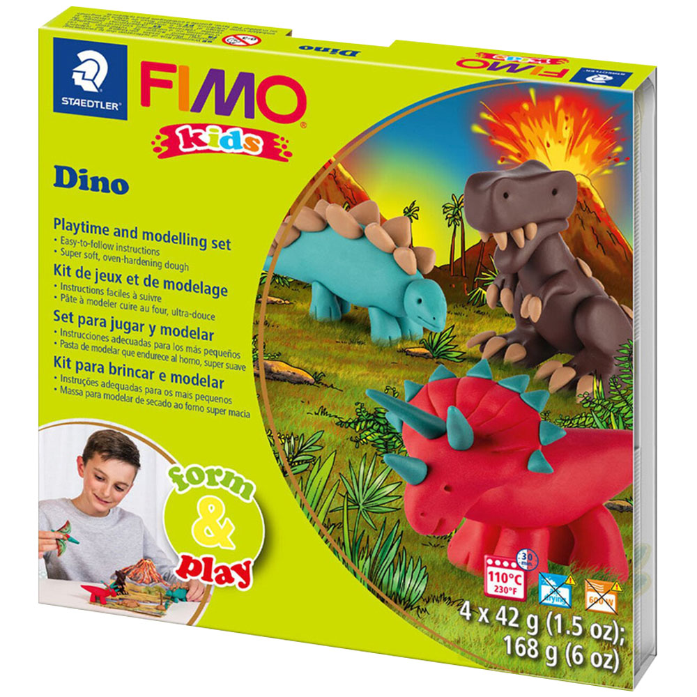 This FIMO Form and Play Dino Set is a wonderful way to entertain your little ones. The smooth and soft materials are easy to blend and can be used straight from the packaging. Simply bake in the oven to harden, and your children can create their own scenes against the provided backdrop. Perfect to use on a rainy day, or as an after school activity, this set offers hours of fun for your little ones!