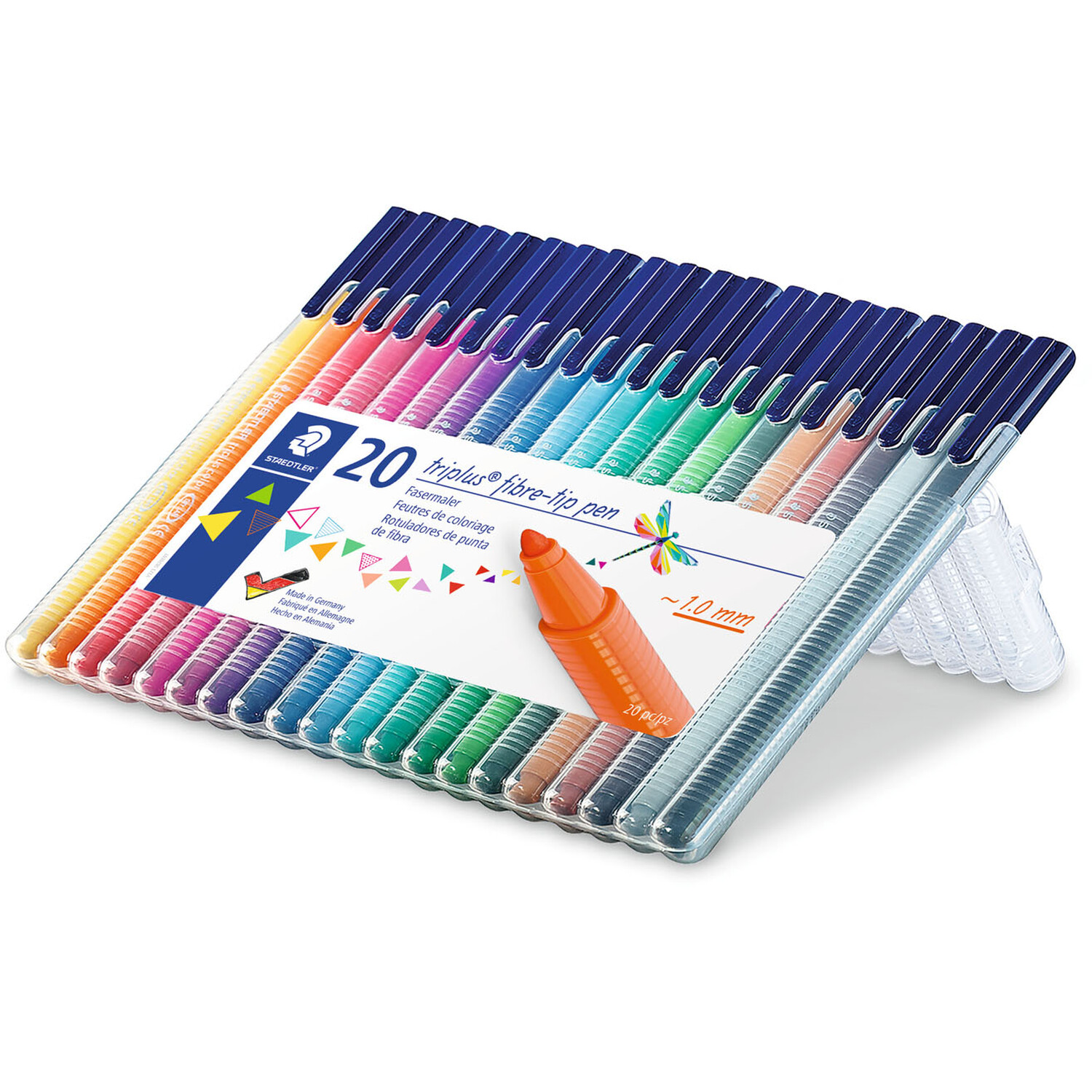 Create your next masterpiece with this wonderful set of Staedtler Triplus Brilliant Colour Fibre Pens. Containing a fabulous array of bright and vibrant colours, the pens feature a pressure-resistant tip and a ventilated cap that can be left off for days without the ink drying up. These fibre-tip pens contain an environmentally friendly water-based ink that washes out of most textiles. An ergonomic, triangular shape is designed for comfort when writing and colouring, reducing fatigue in the hand and allowing smaller hands to grip it with ease.